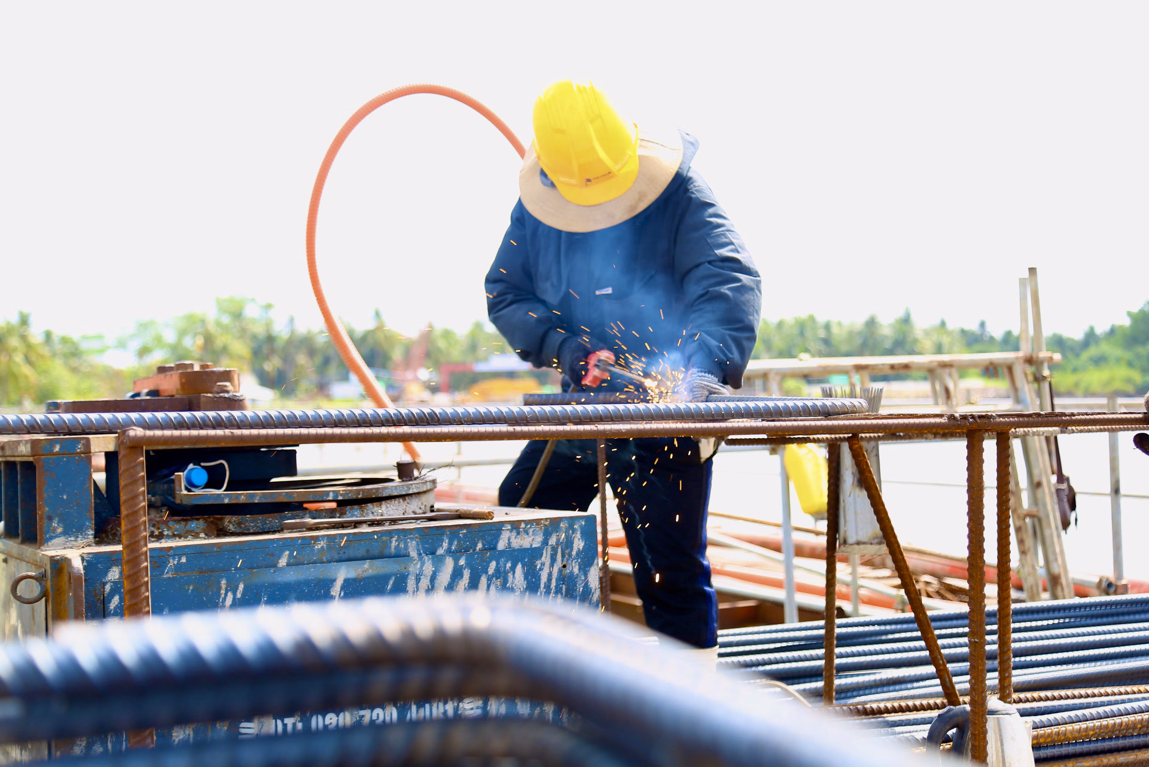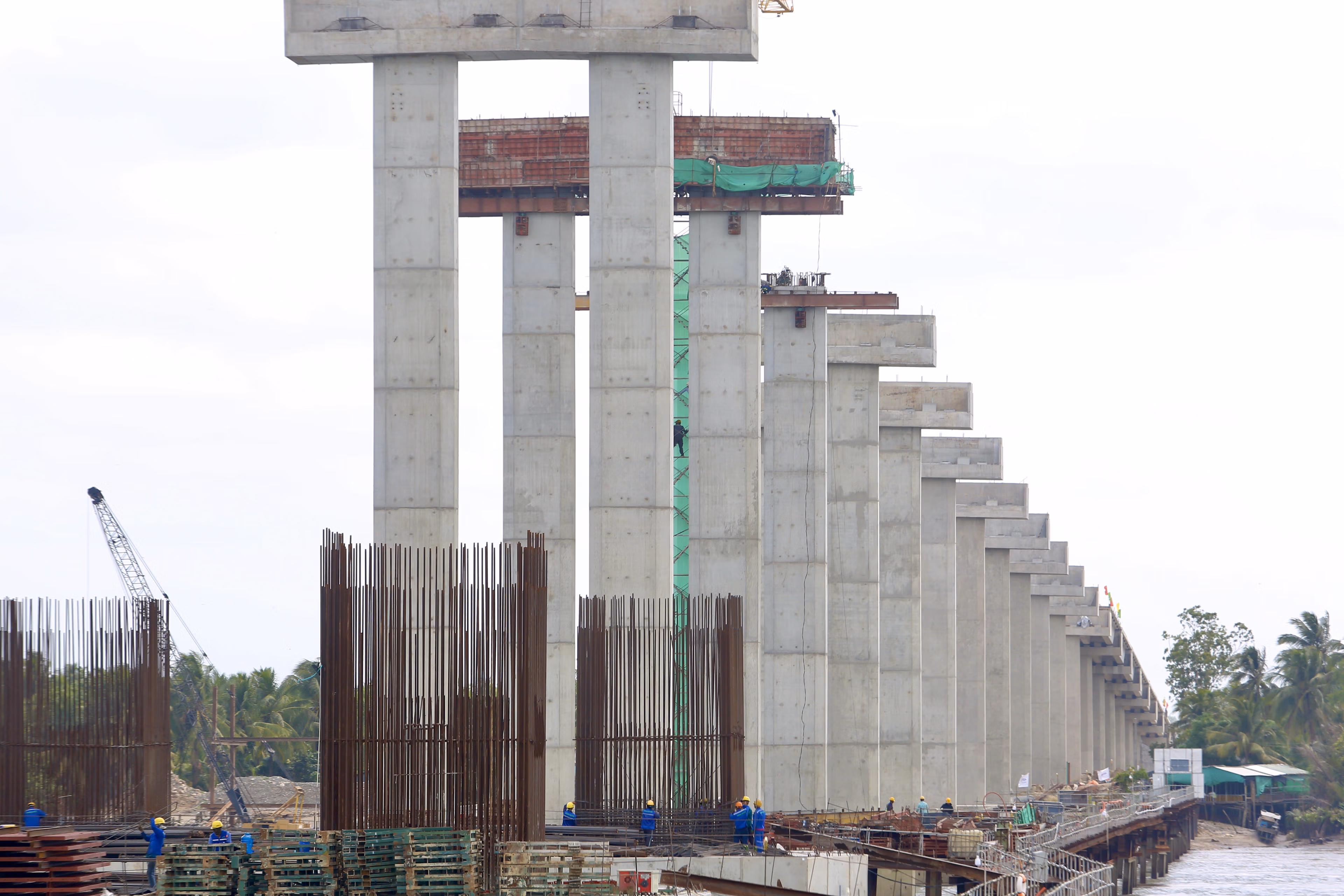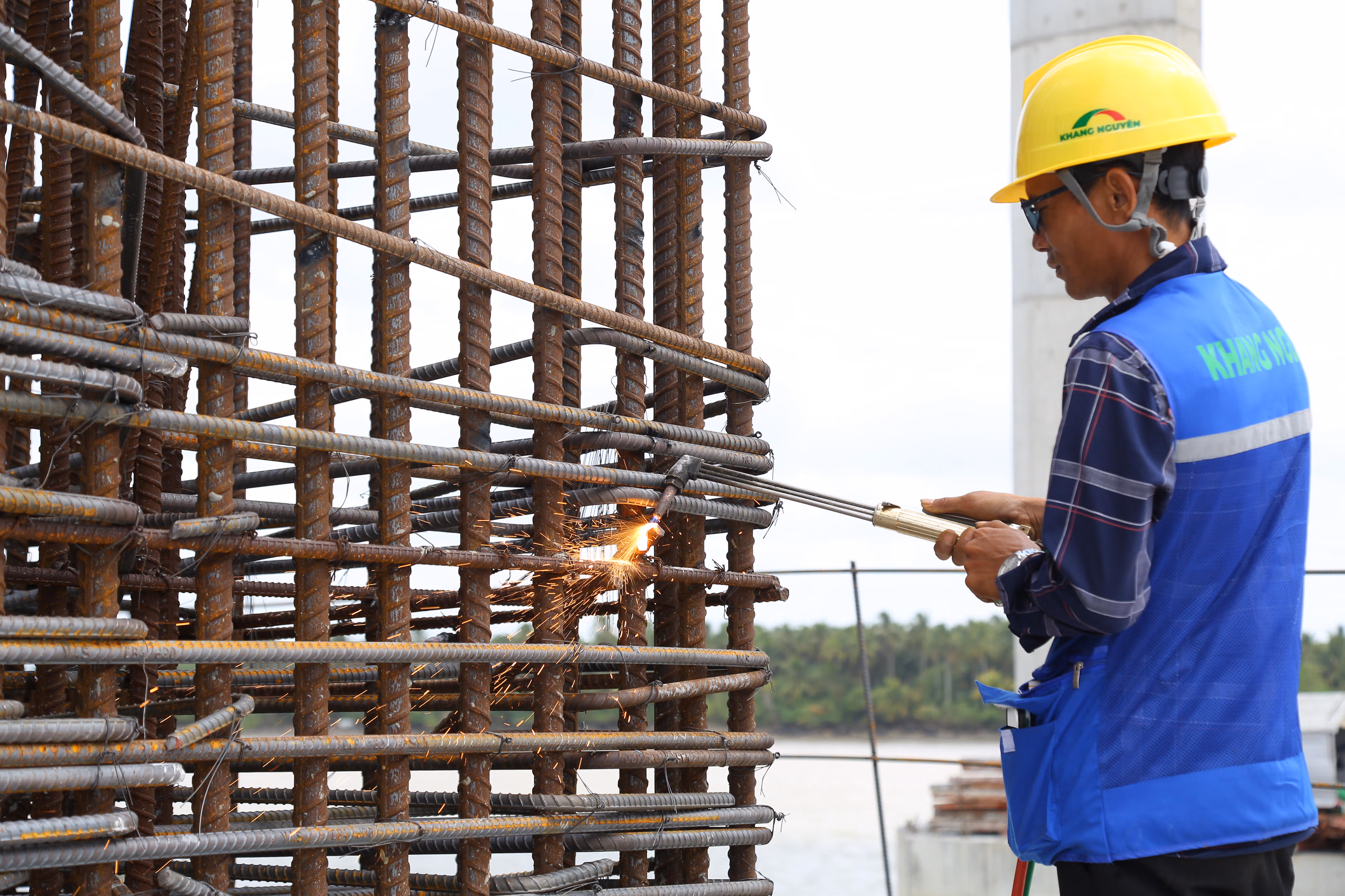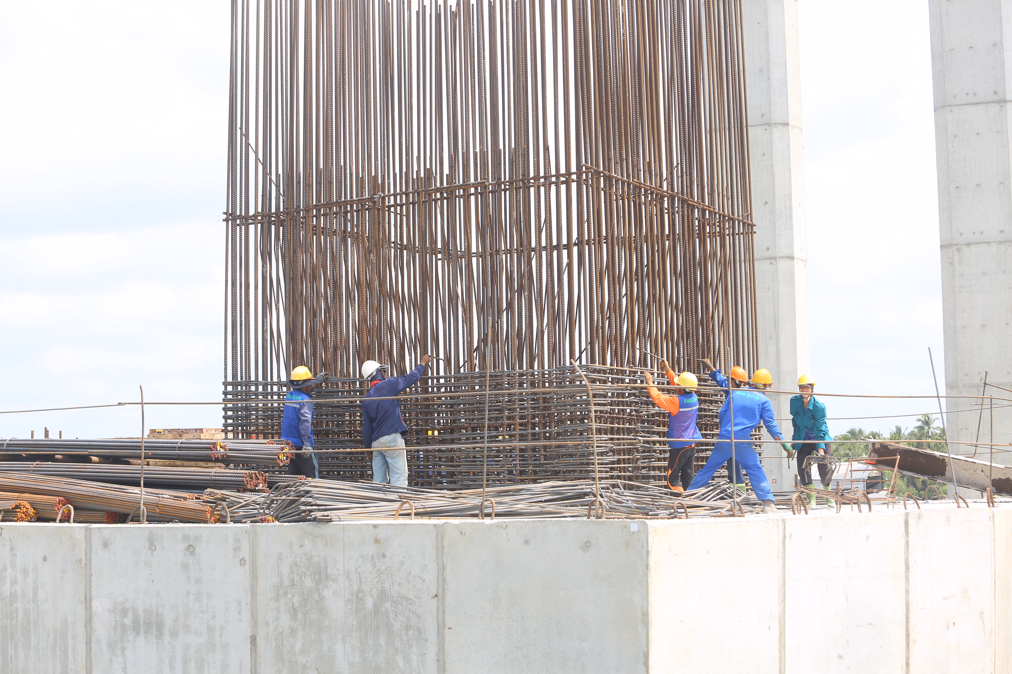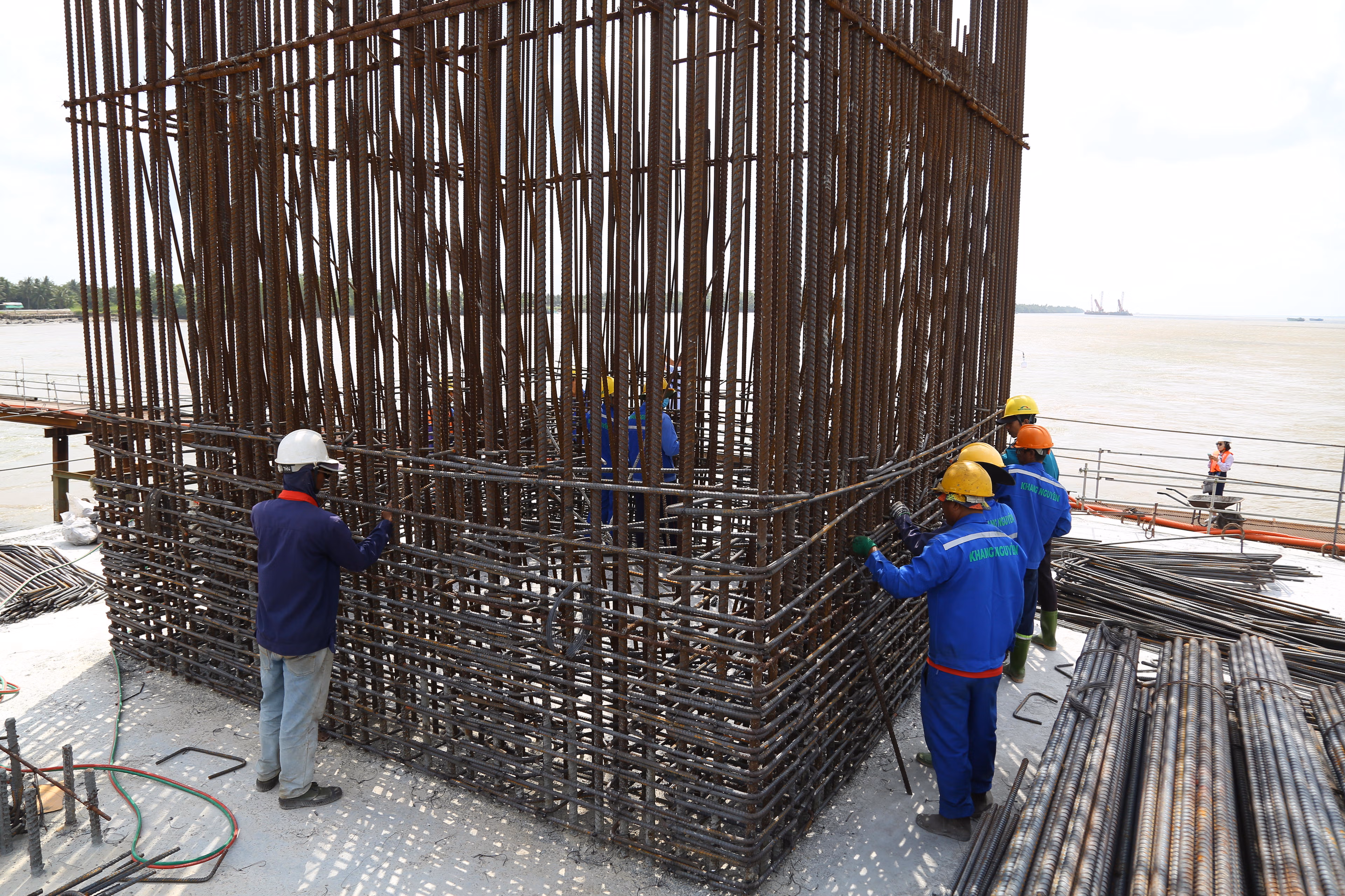 Cận cảnh công trình cầu dây văng có nhịp chính dài thứ 2 Việt Nam Thứ Năm 19/03/2026 09:44 (GMT+7) Hơn 280 công nhân và cán bộ kỹ thuật đang ngày đêm thi công Cầu Đại Ngãi 1, bắc qua luồng Định An của sông Hậu (cầu dây văng có nhịp chính dài thứ 2 Việt Nam). Cầu Đại Ngãi 1 (thuộc dự án đầu tư xây dựng cầu Ðại Ngãi do Ban Quản lý dự án 85, Bộ Xây dựng làm chủ đầu tư) có chiều dài hơn 3km, trong đó phần cầu chính dài 2,59km, rộng 21,5m, bắc qua luồng Định An của sông Hậu. Ảnh: Thanh Tiến Công trình được thiết kế theo kết cấu dây văng với hai trụ tháp chính hình chữ A cao 110m. Nhịp chính của cầu dài 450m (lớn thứ hai Việt Nam sau cầu Cần Thơ (550m). Công trình có tổng giá trị xây lắp hơn 3.867 tỷ đồng. Ảnh: Thanh TiếnNhững ngày này, không khí thi công trên công trường Cầu Đại Ngãi 1 diễn ra khẩn trương. Ảnh: Thanh TiếnCông trường đã huy động 82 máy móc thiết bị; 49 Cán bộ kỹ thuật và 235 công nhân. Ảnh: Thanh TiếnNhân sự và máy móc được chia làm 30 mũi thi công gồm: 11 mũi thi công bệ, trụ, xà mũ, tấm bê tông cốt thép, kè; 2 mũi thi công đường đầu cầu (tuyến); 7 mũi thi công dầm, dầm thép, cáp dây văng; 7 mũi thi công thân bệ trụ cầu chính. Ảnh: Thanh TiếnCác công nhân đang thi công thân bệ trụ cầu chính. Ảnh: Thanh TiếnTính đến nay, công trình Cầu Đại Ngãi 1 đã thi công đạt 58,81% giá trị xây lắp theo hợp đồng (nhanh 0,95% so với kế hoạch). Ảnh: Thanh TiếnTrong đó, công trình đã hoàn thành 100% các cọc khoan nhồi; đổ bê tông 35/48 mố, trụ cầu và đúc 279/294 phiến dầm. Ở hai đầu cầu, công tác xử lý nền đất yếu đã được hoàn tất bằng phương pháp bấc thấm và cọc xi măng đất. Ảnh: Thanh TiếnTheo Ban điều hành dự án cầu Đại Ngãi (Ban Quản lý dự án 85), công trình Cầu Đại Ngãi 1 đang được triển khai thi công bảo đảm chất lượng, an toàn lao động và vệ sinh môi trường, tiến độ thi công cơ bản đáp ứng yêu cầu. Ảnh: Thanh TiếnTuy nhiên, công trình hiện đang gặp khó khăn về nguồn vật liệu xây dựng (không đủ nguồn đá hộc để thi công phần kè và thiếu đá cho bê tông xi măng). Ảnh: Thanh TiếnTrong năm 2026, dự án cần khoảng 24.000m3 đá. Ảnh: Thanh TiếnTừ những khó khăn trên, Ban Quản lý dự án 85 đã kiến nghị Bộ Xây dựng có Văn bản gửi UBND TP.HCM, UBND tỉnh Đồng Nai và UBND tỉnh An Giang hỗ trợ, ưu tiên cấp cho Dự án khoảng 15.000m3 đá hộc (chậm nhất vào giữa tháng 3/2026) và khoảng 24.000m3 (trong năm 2026) để dự án thi công đáp ứng tiến độ. Ảnh: Thanh Tiến Thanh Tiến