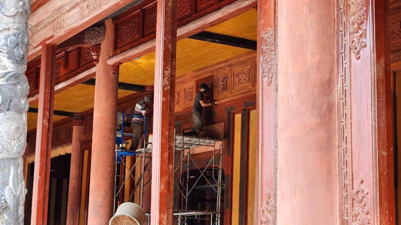 Cận cảnh nơi đặt ngai vàng của các vua triều Nguyễn đang được trùng tu Thứ Hai 19/08/2024 11:58 (GMT+7) Sau một thời gian dài trùng tu, điện Thái Hòa - ngôi điện quan trọng nhất trong Hoàng cung Huế đang dần hoàn thiện. Điện Thái Hòa được khởi công xây dựng vào tháng 2/1805, hoàn thành vào tháng 10/1805. Đây là ngôi điện quan trọng nhất trong Hoàng cung Huế, nơi đặt ngai vàng và nơi đăng quang của 13 vua triều Nguyễn, từ vua Gia Long tới vua Bảo Đại. Ảnh: N.Q.Ngoài ra, điện Thái Hòa cũng là nơi cử hành các nghi lễ quan trọng nhất của triều Nguyễn. Điện Thái Hòa và không gian là biểu tượng cao nhất về uy quyền, một công trình nằm trong Quần thể di tích Cố đô Huế (Quần thể di tích Cố đô Huế được UNESCO công nhận là di sản văn hóa thế giới vào ngày 11/12/1993). Ảnh: N.Q.Trải qua hàng trăm năm tồn tại, điện Thái Hòa bị xuống cấp nghiêm trọng. Đến cuối tháng 11/2021, Trung tâm Bảo tồn Di tích cố đô Huế tiến hành lễ khởi công bảo tồn, tu bổ tổng thể di tích. Ảnh: N.Q.Dự án bảo tồn, tu bổ tổng thể di tích điện Thái Hòa được UBND tỉnh Thừa Thiên - Huế phê duyệt và bố trí vốn trùng tu năm 2021 từ nguồn ngân sách Trung ương hỗ trợ, với tổng mức đầu tư trên 128 tỷ đồng. Dự án chính thức được thực hiện từ ngày 23/11/2021 và dự kiến hoàn thành vào 8/2025. Ảnh: N.Q.Dự án có tổng diện tích 7.100 m2, trong đó khuôn viên điện Thái Hòa có tổng diện tích 4.851,3 m2, điện Thái Hòa 1.440 m2, sân Đại Triều Nghi 1.640 m2. Ảnh: N.Q.Hệ khung gỗ, hệ mái, hệ vách ván, cửa bằng gỗ cũng được tu bổ, phục hồi. Ảnh: N.Q.Hiện nay, việc trùng tu điện Thái Hòa vẫn đang được triển khai, hoàn thiện. Ảnh: N.Q.Hệ mái của công trình điện Thái Hòa được lợp ngói hoàng lưu ly và ngói liệt men vàng. Ảnh: N.Q.Những họa tiết hình rồng trên mái điện được làm rất tinh xảo. Ảnh: N.Q.Điện Thái Hòa khi hoàn thành công tác trùng tu hứa hẹn sẽ là điểm đến tham quan hấp dẫn cho du khách khi đến Huế. Trước đó, vào dịp Tết Nguyên đán 2024, dù chưa hoàn thành trùng tu nhưng đơn vị quản lý di tích tiến hành mở cửa điện Thái Hòa để cho du khách tham quan. Ảnh: N.Q. Nguyễn Quốc