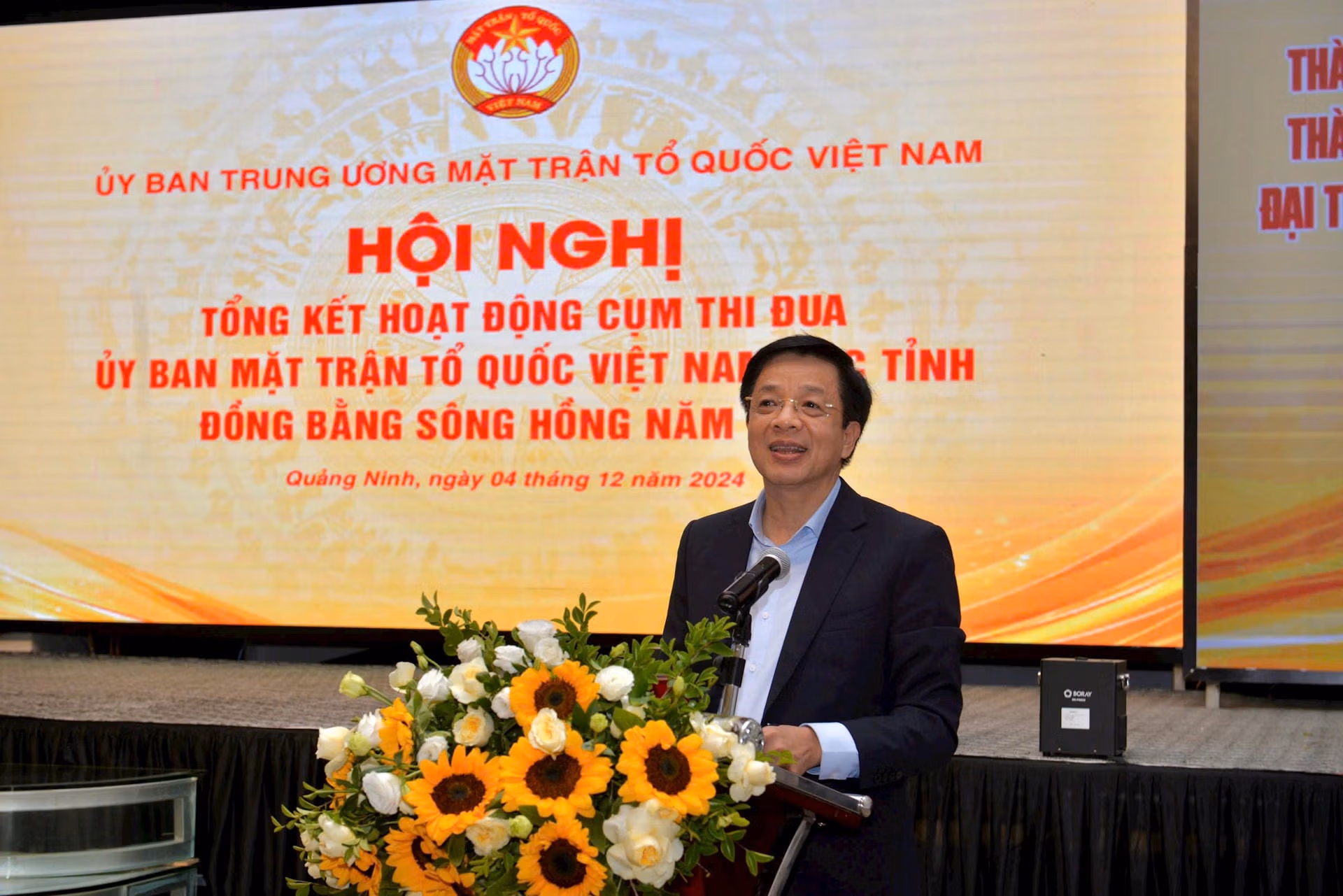 Đó là ý kiến chỉ đạo của Ủy viên Trung ương Đảng, Phó Chủ tịch - Tổng Thư ký Ủy ban Trung ương MTTQ Việt Nam Nguyễn Thị Thu Hà tại Hội nghị Tổng kết hoạt động Cụm thi đua Ủy ban MTTQ Việt Nam các tỉnh Đồng bằng sông Hồng năm 2024.
