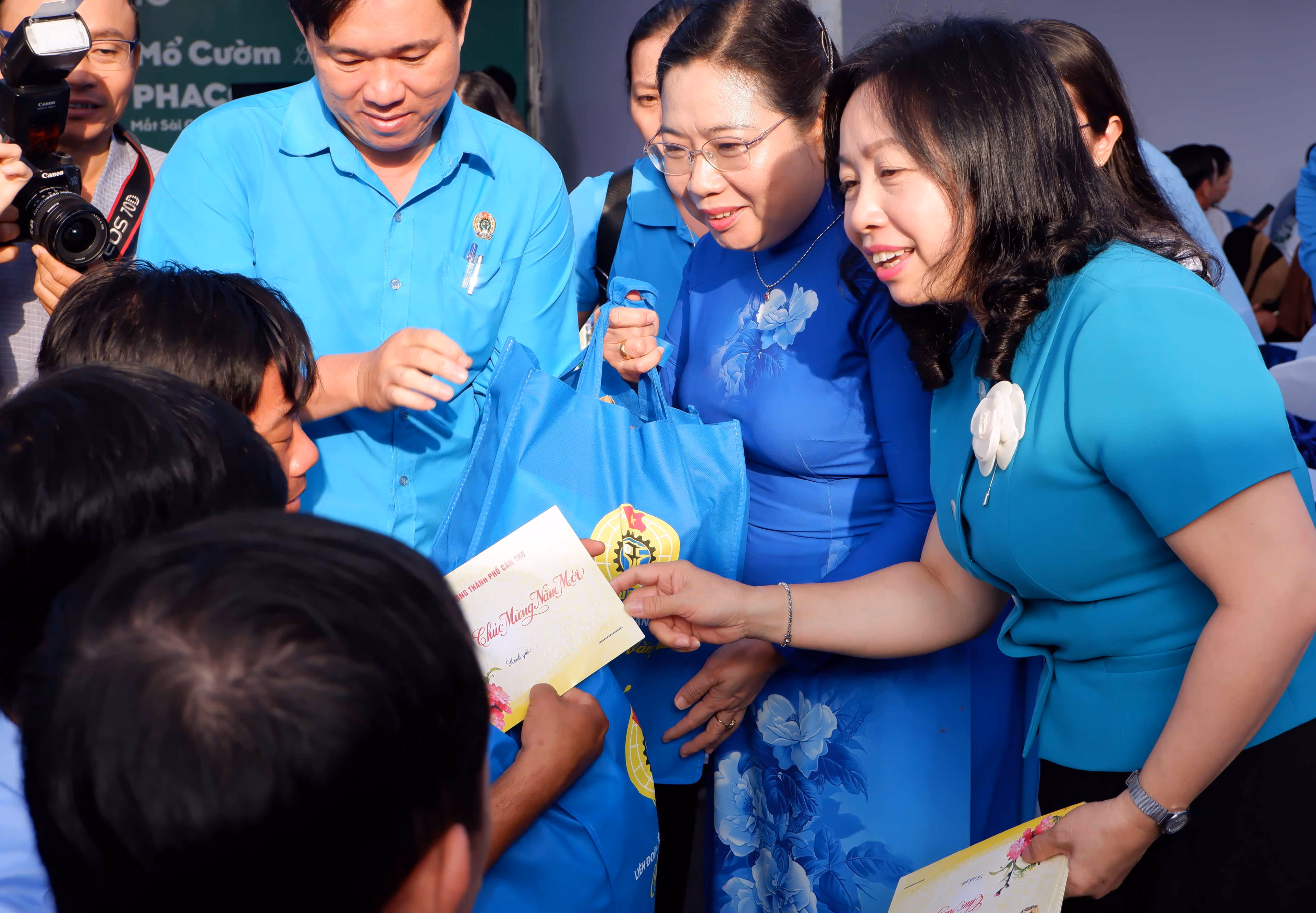 Bà Lê Thị Sương Mai cũng cho biết thêm: Dưới sự chung tay của các doanh nghiệp, tổ chức, cá nhân theo tinh thần xã hội hóa, nhân dịp Tết Bính Ngọ 2026, toàn thành phố đã trao tặng hơn 20.000 phần quà dành cho đoàn viên và người lao động có hoàn cảnh khó khăn trên địa bàn với tổng giá trị gần 19 tỷ đồng. Trong đó, trao 500 phần quà cho các anh, chị, em công nhân tại các khu công nghiệp.