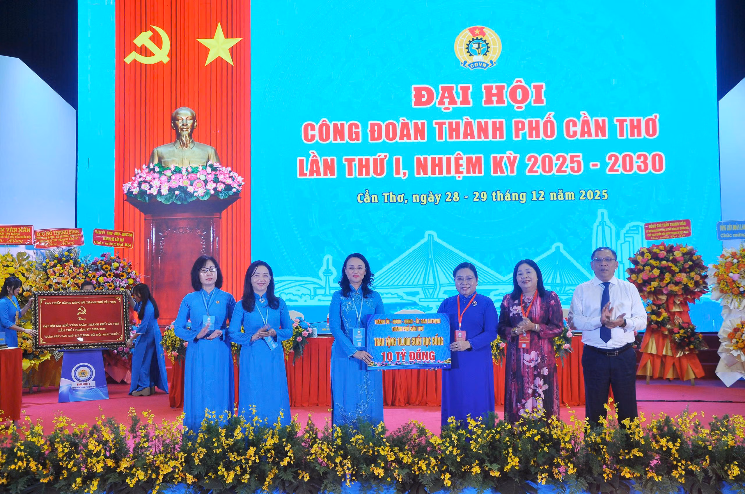 Dịp này, Thành ủy, HĐND, UBND, Ủy ban MTTQ Việt Nam thành phố tặng đoàn viên Công đoàn TP Cần Thơ 10.000 suất học bổng trị giá 10 tỷ đồng.