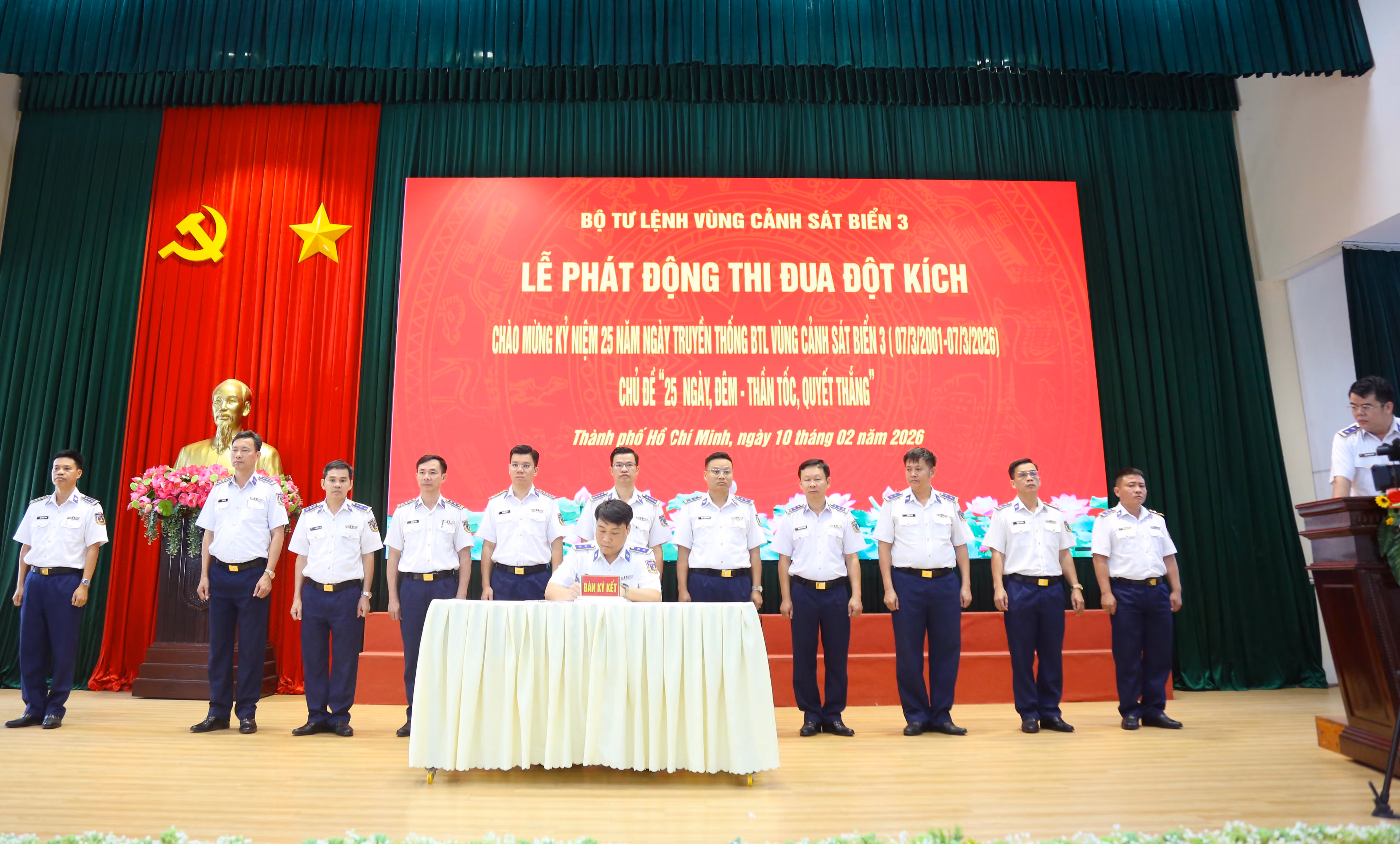 Ngày 10/2, Bộ Tư lệnh Vùng Cảnh sát biển 3 tổ chức Lễ phát động đợt thi đua đột kích chào mừng kỷ niệm 25 năm ngày truyền thống Bộ Tư lệnh (BTL) Vùng Cảnh sát biển 3 (7/3/2001-7/3/2026) với chủ đề “25 ngày, đêm – Thần tốc, quyết thắng”.