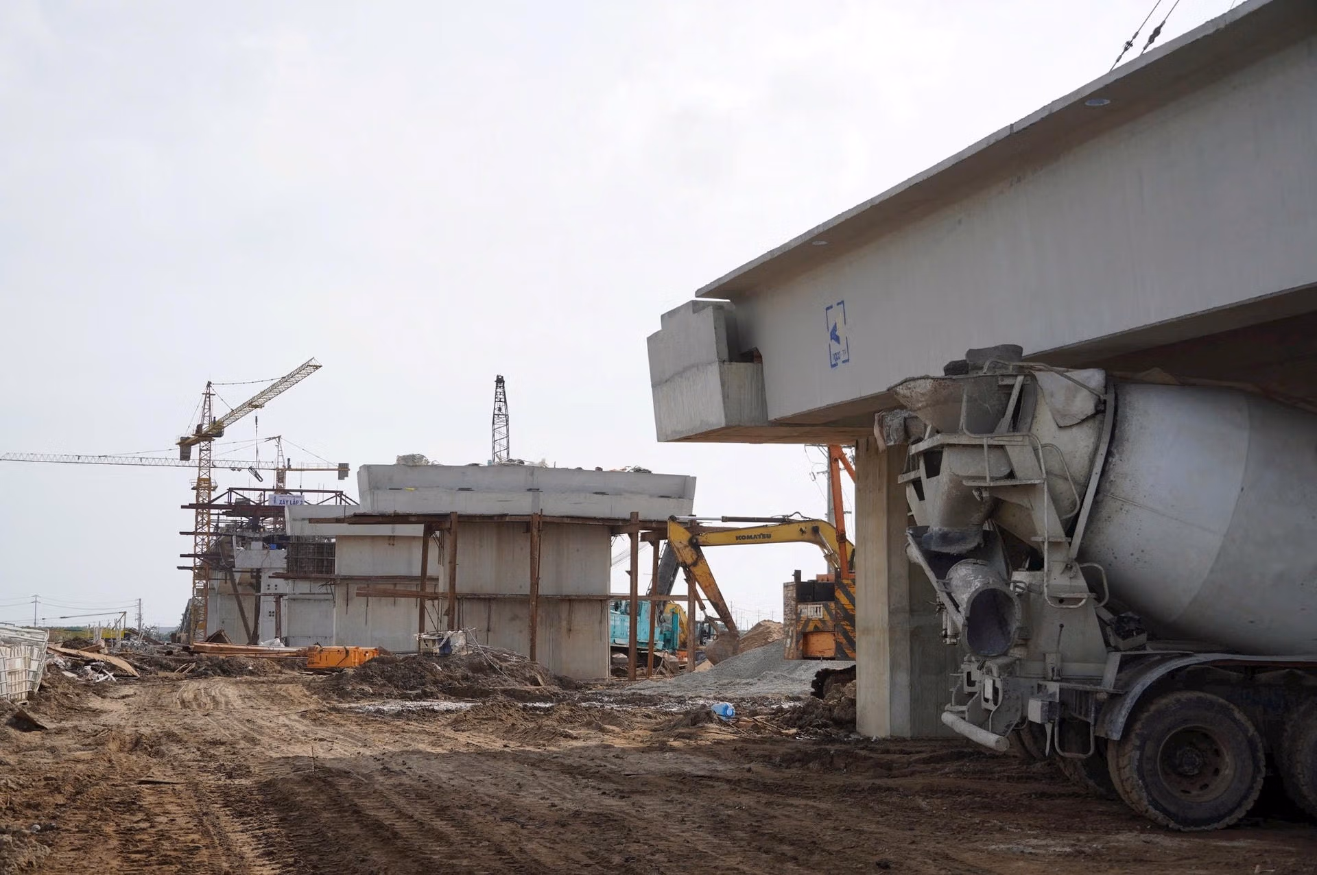 Cầu Gành Hào được triển khai với 7 gói thầu, nhiều kỹ sư, công nhân chia ca làm việc xuyên suốt để đảm bảo tiến độ thi công.