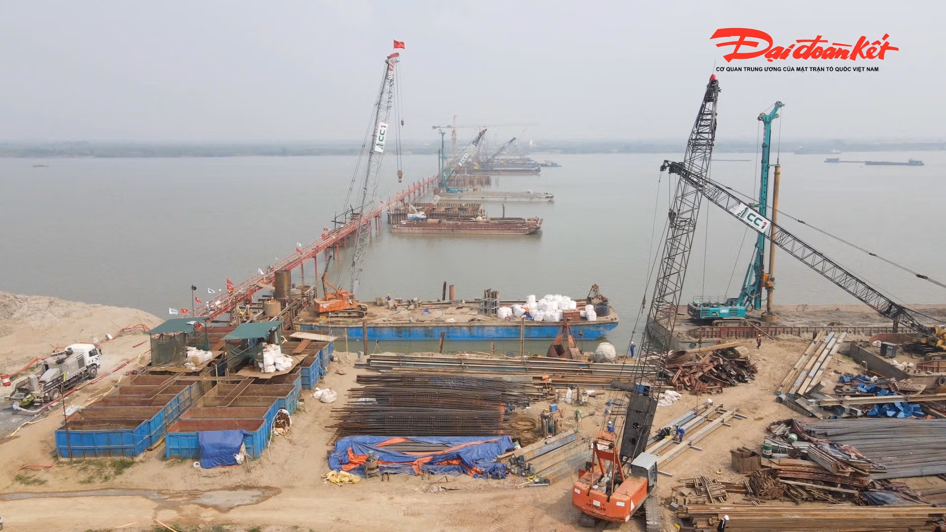 Cầu Hồng Hà tăng tốc thi công, dự kiến vượt kế hoạch 5 tháng