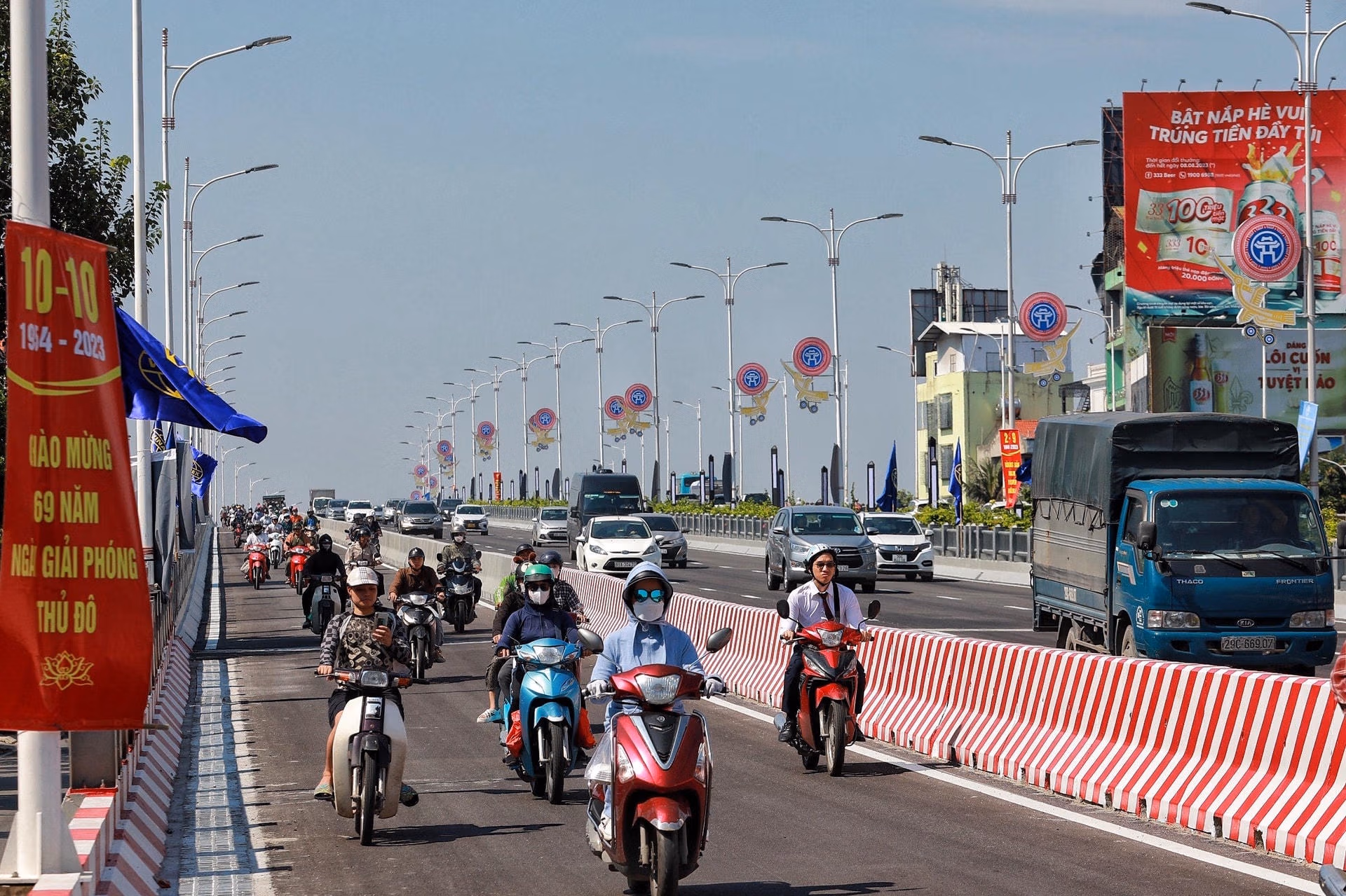 Cầu Vĩnh Tuy thoát cảnh ùn tắc sau thông xe Thứ Năm 31/08/2023 13:06 (GMT+7) Ngày đầu sau khi cầu Vĩnh Tuy 2 thông xe, các phương tiện di chuyển thuận lợi, không xuất hiện ùn tắc ở cả chiều vào trung tâm thành phố và hướng đi các tỉnh. Theo ghi nhận của PV Đại Đoàn Kết Online, khác với trước kia, cầu Vĩnh Tuy thường xuyên lâm cảnh ùn tắc vào giờ cao điểm thì nay, ngay sau khi cầu Vĩnh Tuy 2 thông xe, các phương tiện di chuyển dễ dàng và thuận tiện không xảy ra ùn tắc.Trước đây, tại nút giao Cổ Linh cũng thường xuyên ùn tắc thì ngay sau khi thông cầu phương tiện qua đây lưu thông thuận lợi hơn.Sau khi hoàn thành giai đoạn 2, cầu Vĩnh Tuy có chiều rộng mặt cắt ngang lớn nhất Hà Nội với 8 làn xe ô tô.Đánh giá từ Sở GTVT Hà Nội, sau khi cầu Vĩnh Tuy 2 được đưa vào khai thác, trong sáng nay, giao thông trên cầu Vĩnh Tuy ổn định, không xuất hiện cảnh ùn tắc. Tuy nhiên, do cầu mới thông, tổ chức giao thông hoàn toàn mới, một số xe máy vẫn di chuyển sai quy định."Chúng tôi sẽ theo dõi giao thông đi lại qua cầu sau thông xe để có những điều chỉnh phù hợp nhất, tạo điều kiện cho người dân đi lại", vị đại diện Sở GTVT Hà Nội khẳng định.Các phương tiện di chuyển thuận lợi cả chiều vào trung tâm thành phố và hướng đi các tỉnh. Sau khi cầu Vĩnh Tuy 2 sau thông xe, giao thông đi một chiều theo hướng từ Hai Bà Trưng đi Long Biên, được phân 3 làn xe cơ giới. Làn cạnh dải phân cách giữa với chiều rộng 3,75m/mỗi làn, tốc độ khai thác tối đa 60km/h. 1 làn xe hỗn hợp (xe máy và xe thô sơ) - làn cạnh lan can phải cầu với chiều rộng 4,8m, tốc độ khai thác tối đa 40km/h. Lê Khánh