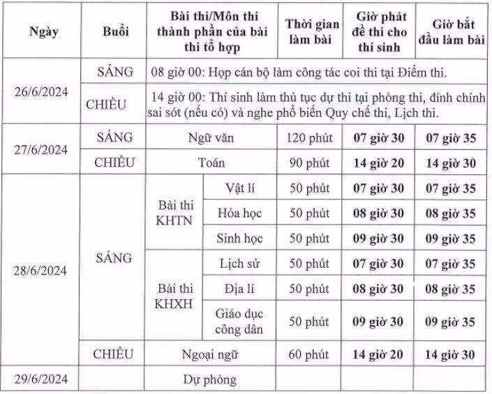 Kỳ thi tốt nghiệp THPT năm 2024 diễn ra vào ngày 26, 27, 28, 29/6.