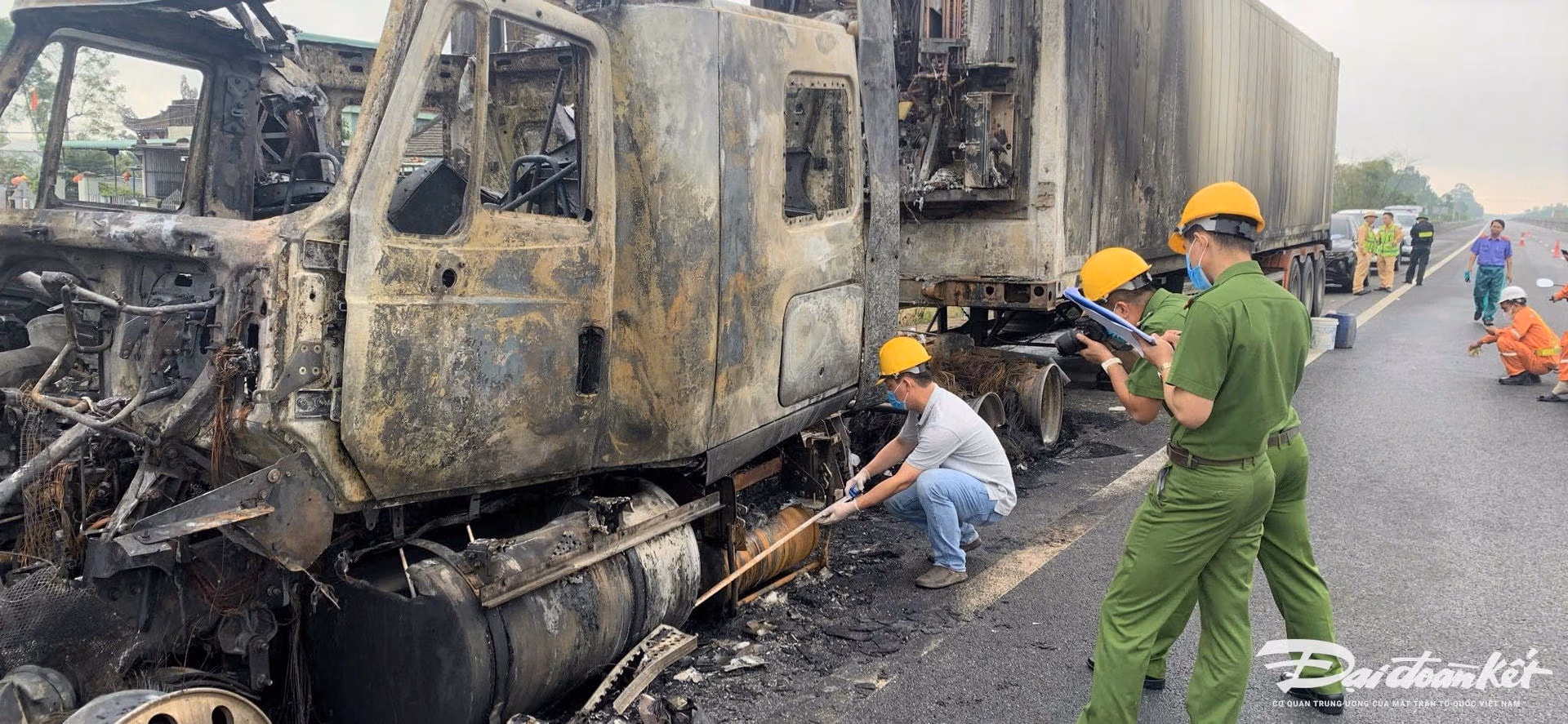 Theo đó, khoảng 4h cùng ngày, xe container BKS: 98F -00713 kéo theo Sơ-mi rơ-mooc BKS: 98R-03631, do tài xế Đặng Minh Thắng (36 tuổi), ở tỉnh Bắc Giang đang lưu thông trên tuyến cao tốc Đà Nẵng - Quảng Ngãi, đoạn qua xã Duy Sơn, huyện Duy Xuyên, tỉnh Quảng Nam bất ngờ bốc cháy lớn.