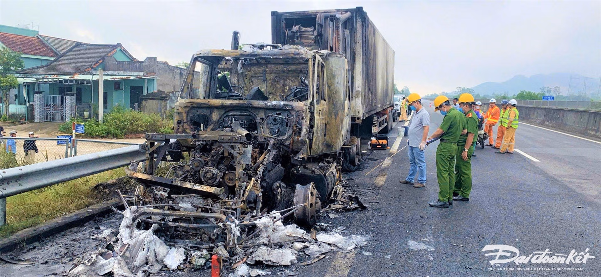 Xe chở hàng hóa đang lưu thông trên cao tốc Đà Nẵng - Quảng Ngãi thì bất ngờ bốc cháy gây thiệt hại tài sản.