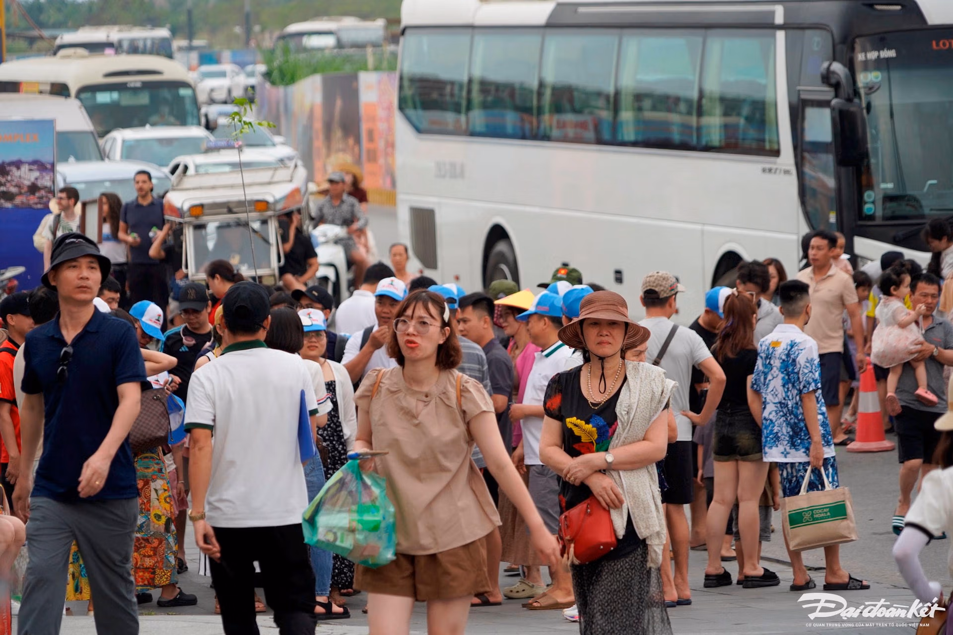 Sáng 29/4, tại nhà ga Cảng tàu khách Quốc tế Tuần Châu và Cảng tàu khách quốc tế Hạ Long, du khách chen chúc mua vé tham quan vịnh Hạ Long.
