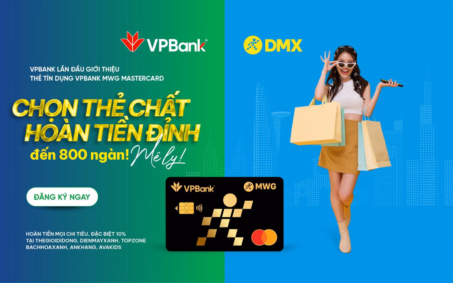 Khách hàng mở mới thẻ tín dụng VPBank MWG Mastercard là thẻ lần đầu tiên tại VPBank sẽ nhận được quà chào mừng lên đến 500.000 đồng. Ngoài ra, người dùng có thể tích điểm thông qua ứng dụng quà tặng của VPBank và DMX cũng như tiếp cận các chương trình ưu đãi gắn với các dịp mua sắm cao điểm trong năm.