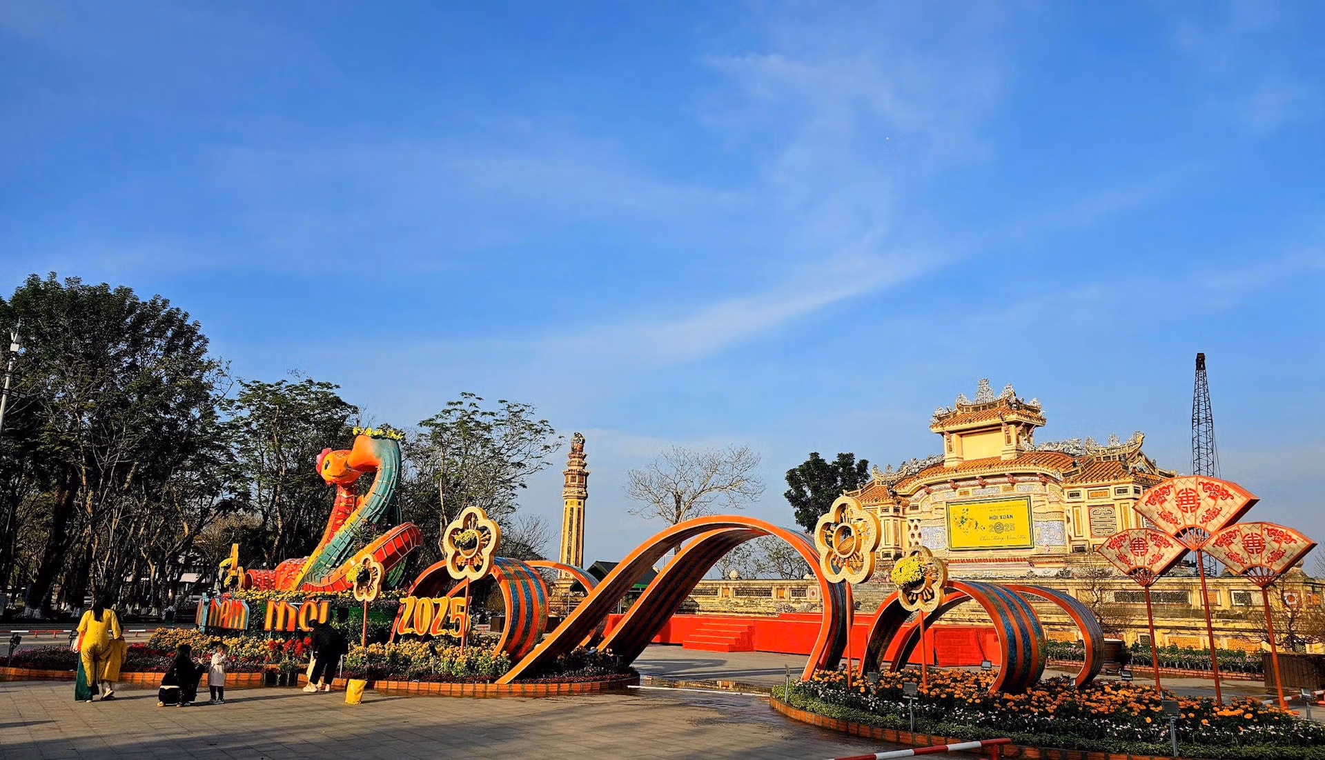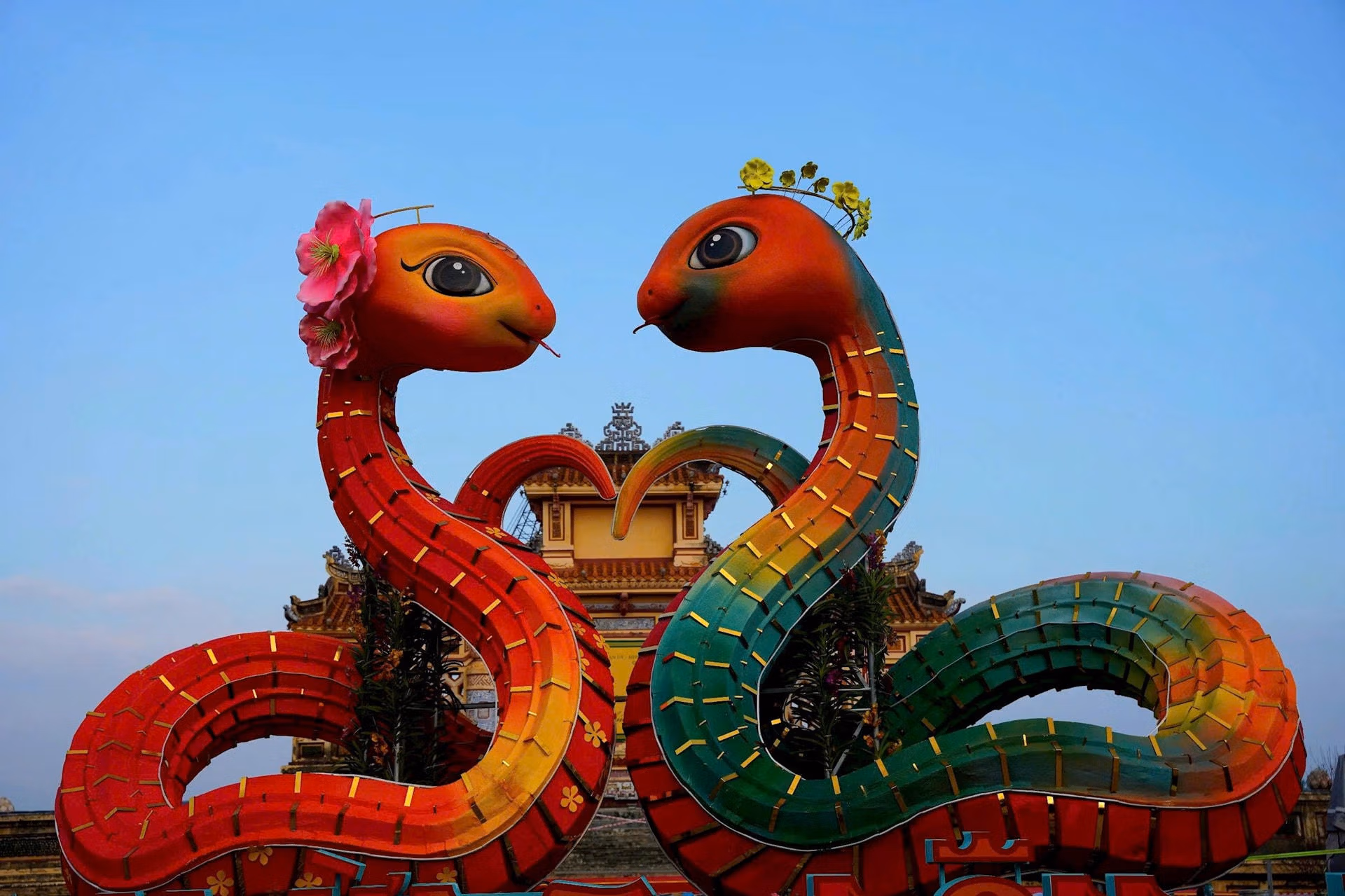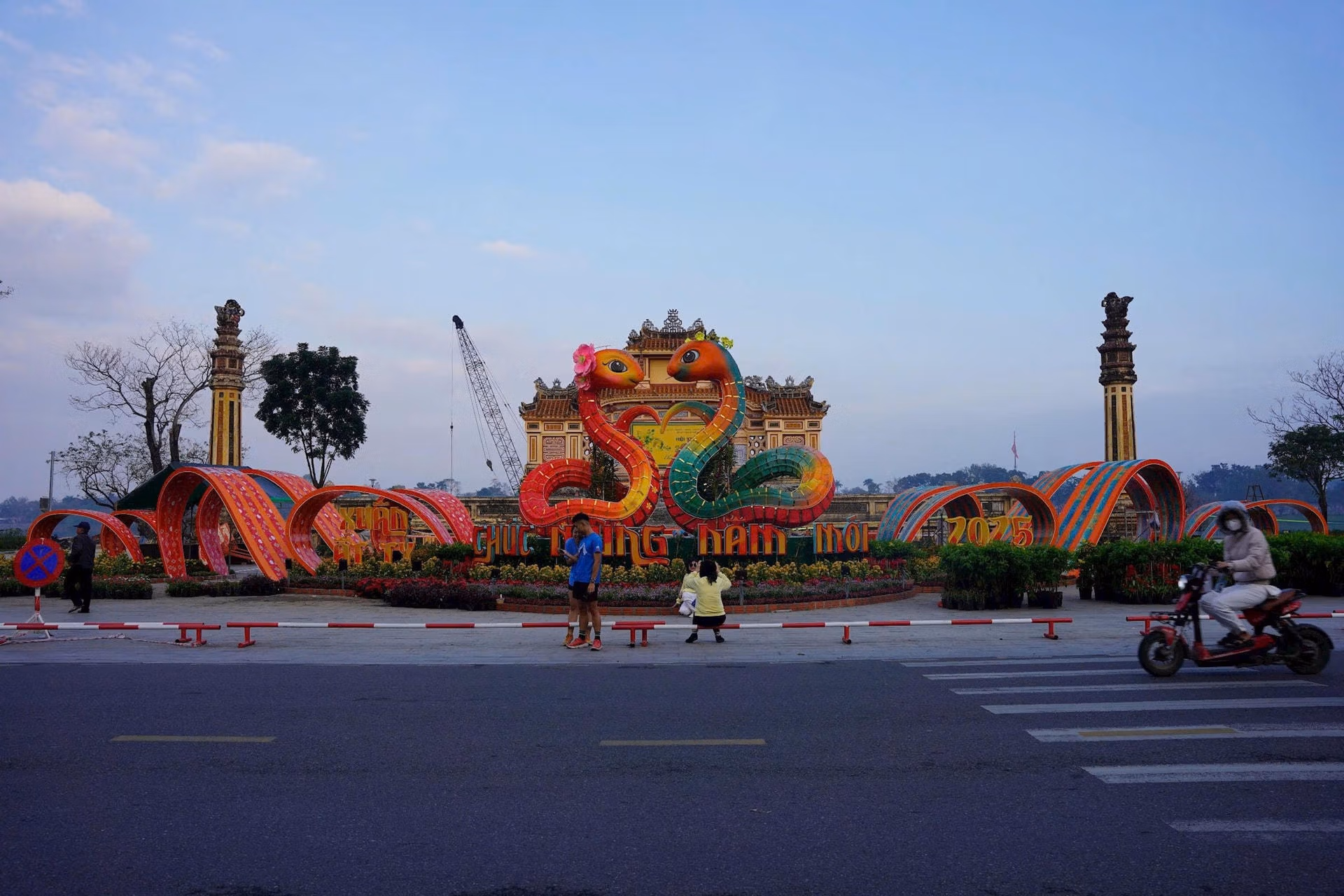 Chiêm ngưỡng linh vật rắn Tết Ất Tỵ ở Huế Chủ Nhật 26/01/2025 15:59 (GMT+7) Cặp linh vật rắn ở Huế sau khi được hoàn thiện đã thu hút nhiều người dân đến tham quan, chiêm ngưỡng và check in. Ngày 26/1, Trung tâm Công viên cây xanh quận Thuận Hóa (TP Huế) cho biết, sau thời gian chế tác, lắp đặt, cặp linh vật rắn đặt tại khu vực trước Trường THPT Chuyên Quốc học Huế đã hoàn thiện và đưa vào phục vụ khách tham quan trong dịp Tết Nguyên đán Ất Tỵ 2025. Ảnh: N.Q.Cặp linh vật rắn được thiết kế với hình dáng thon dài, uốn lượn và đầy màu sắc. Ảnh: N.Q.Ngoài ra, xung quanh đôi linh vật rắn được trang trí bằng nhiều hoa tươi tạo nên một khung cảnh vô cùng rực rỡ. Ảnh: N.Q.Ông Dương Quang Hiền, Giám đốc Trung tâm Công viên cây xanh quận Thuận Hóa cho biết, đôi linh vật rắn này được lấy ý tưởng từ hình ảnh rắn trên Cửu Đỉnh (Đại nội Huế) và được cách điệu nhằm tạo ra hình hài hiền hòa, vui tươi. Ảnh: N.Q.Cặp linh vật rắn này có chiều dài khoảng 30m, được làm bằng khung thép để đảm bảo cố định và chắc chắn. Ảnh: N.Q.Hoa tươi, tiểu cảnh và các họa tiết về năm mới Ất Tỵ 2025 được bố trí xung quanh đôi linh vật rắn. Ảnh: N.Q.Linh vật rắn có dáng vẻ vui tươi, sau khi trình làng được người dân và du khách vô cùng thích với tạo hình bắt mắt. Ảnh: N.Q.Sau khi hoàn thiện, linh vật rắn ở Huế thu hút rất đông người dân và du khách đến chiêm ngưỡng và checkin. Ảnh: N.Q.Linh vật rắn trở thành điểm nhấn của Huế trong dịp Tết Nguyên đán Ất Tỵ 2025. Ảnh: N.Q. Nguyễn Quốc