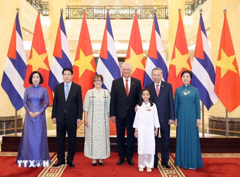 Trong khuôn khổ chuyến thăm cấp Nhà nước tới Việt Nam từ ngày 31/8-2/9/2025, trưa 1/9, tại Hà Nội, Tổng Bí thư Tô Lâm cùng Phu nhân và Chủ tịch nước Lương Cường cùng Phu nhân đã đồng chủ trì cuộc chiêu đãi trọng thể cấp Nhà nước chào mừng Bí thư thứ Nhất Ban Chấp hành Trung ương Đảng Cộng sản Cuba, Chủ tịch nước Cộng hòa Cuba Miguel Díaz-Canel Bermúdez và Phu nhân cùng Đoàn đại biểu cấp cao Cuba.