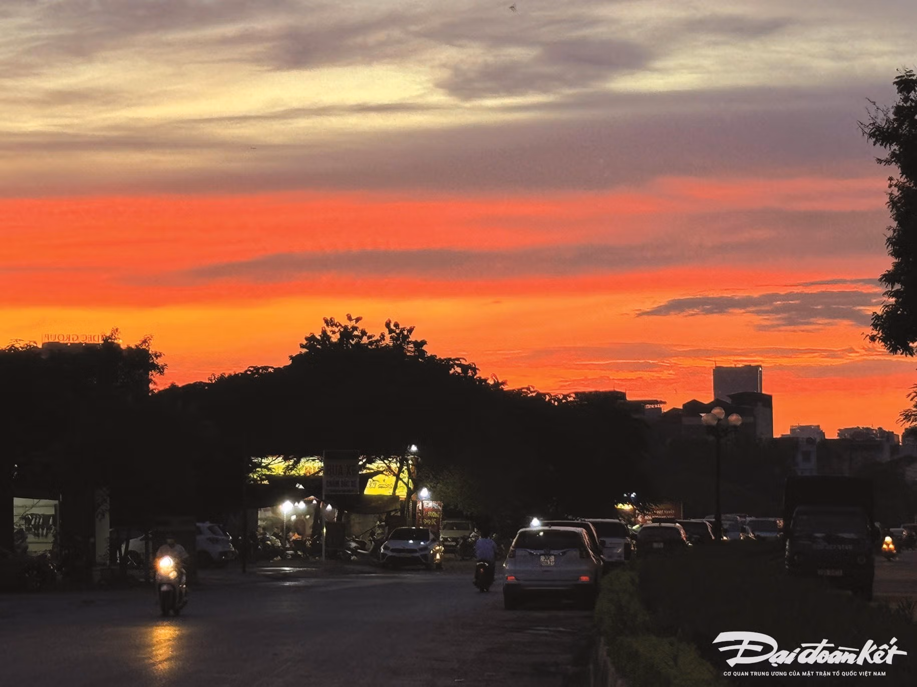 Còn ở Hà Nội, ấy là khi giờ tan tầm đã qua, những đoàn người dồn cục lại ở các đám tắc đường đã vãn. Bầu trời khi đó thường ruộm lên sắc vàng, sắc đỏ, thậm chí những đám mây ngũ sắc xuất hiện.