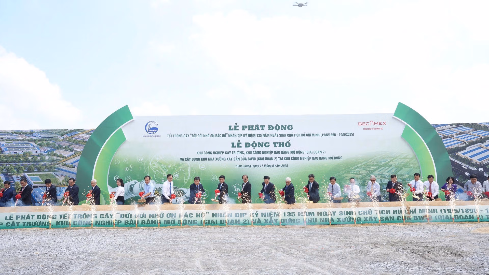 Sáng 17/5, tỉnh Bình Dương tổ chức lễ động thổ khởi công 2 khu công nghiệp (KCN) tại huyện Bàu Bàng.