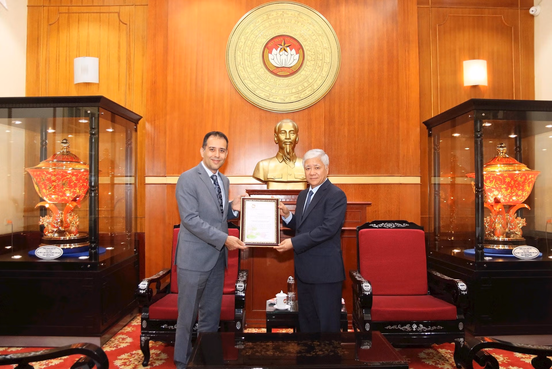 Trao số tiền ủng hộ cho Ban Vận động Cứu trợ Trung ương, Đại sứ Thổ Nhĩ Kỳ tại Việt Nam Korhan Kemik bày tỏ niềm vinh dự khi lần thứ hai quay trở lại UBTƯ MTTQ Việt Nam trao tặng ủng hộ đồng bào các tỉnh khắc phục hậu quả do cơn bão số 3 (Yagi) gây ra.