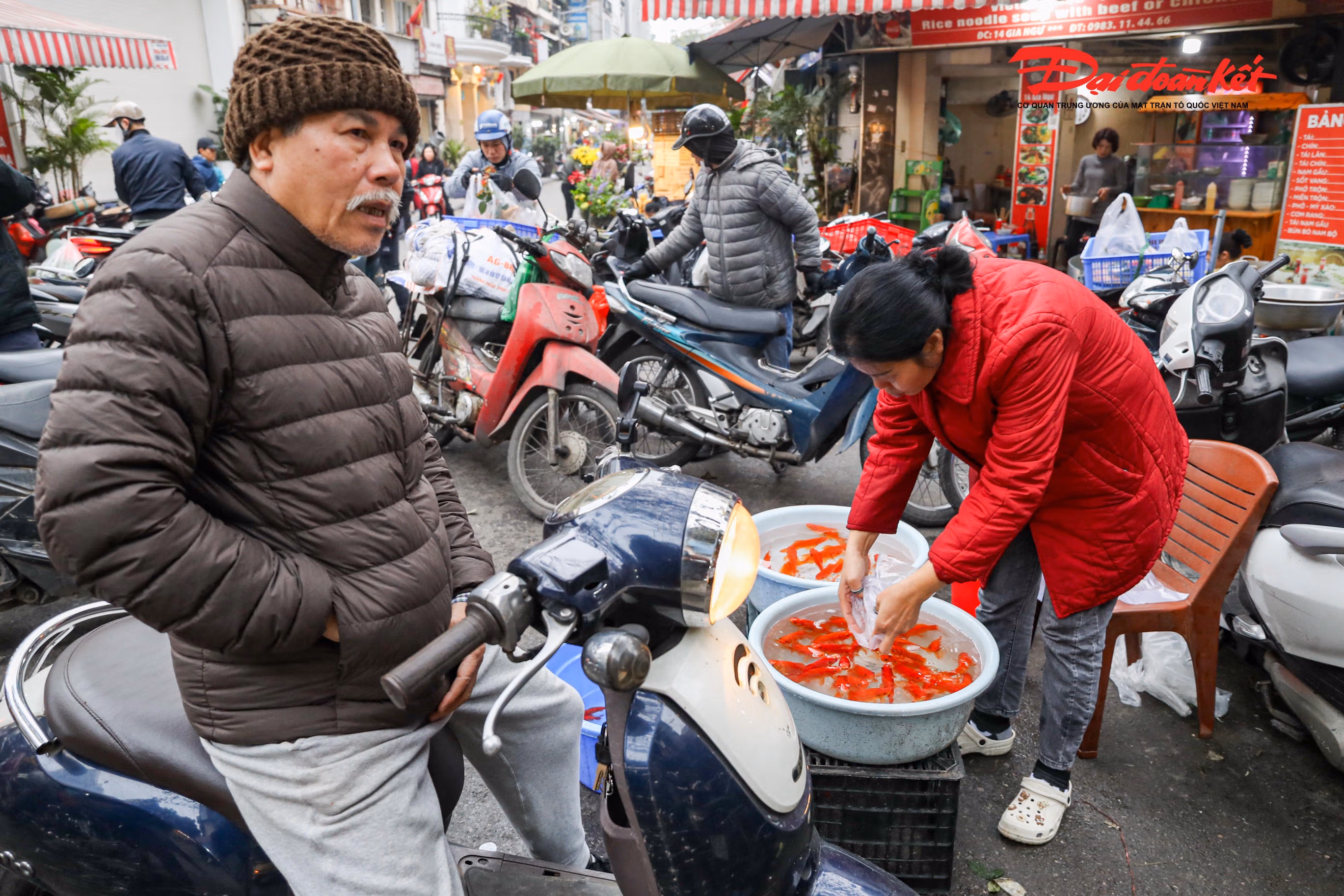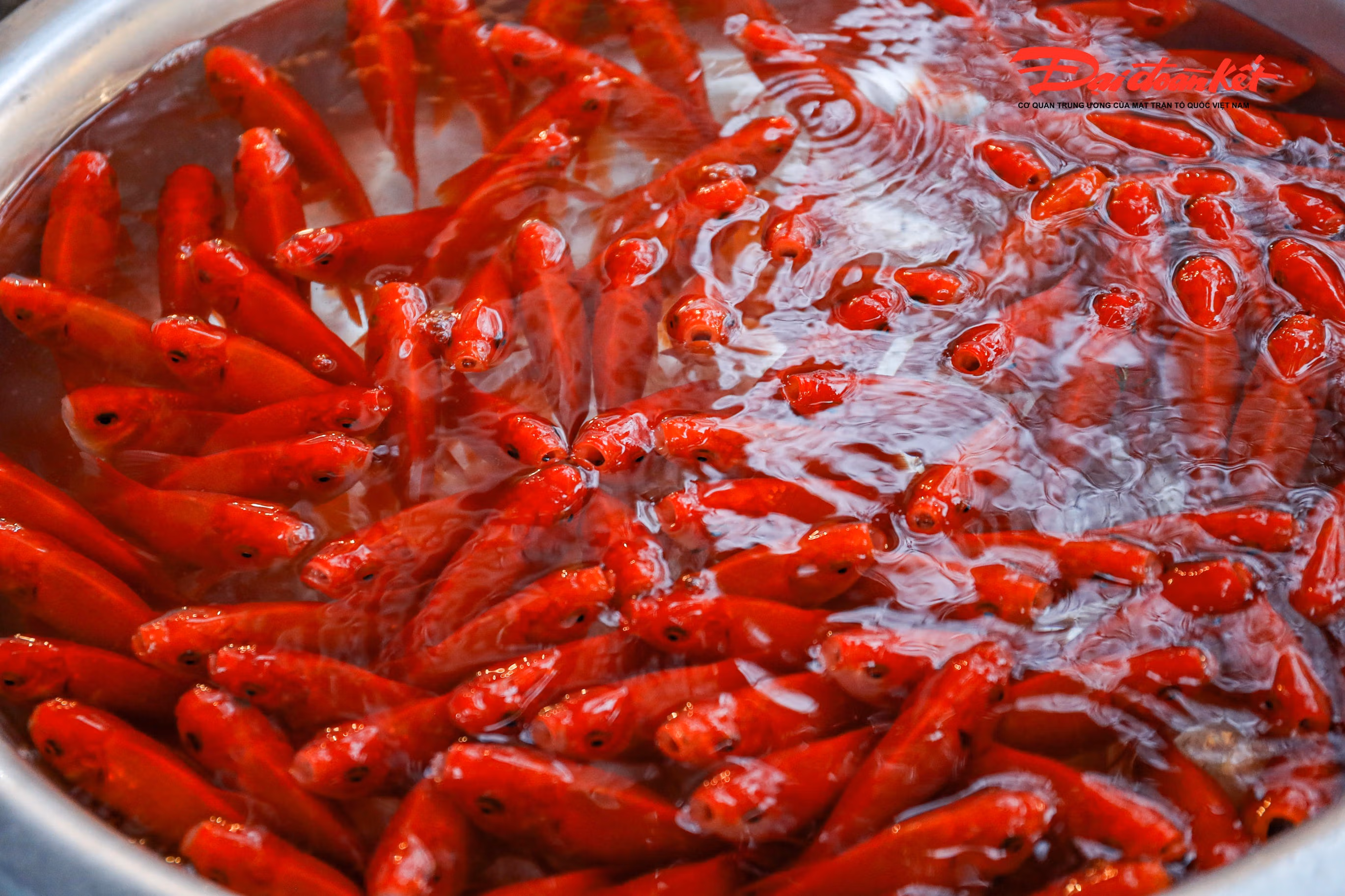 Cá chép đỏ lễ vật không thể thiếu trong phong tục cúng ông Công, ông Táo cũng được bày bán với đủ loại kích cỡ, mức giá dao động từ 50.000 đến 100.000 đồng/ 3 con.