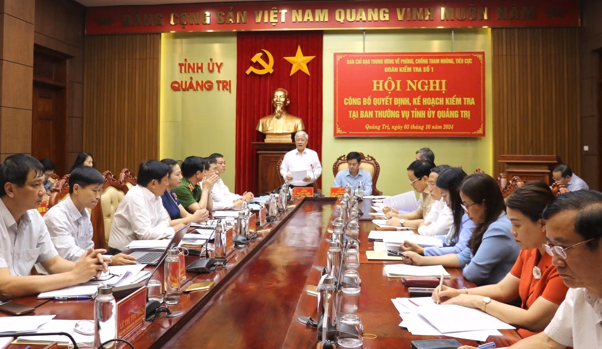 Ngày 3/10, tại thành phố Đông Hà, tỉnh Quảng Trị, đoàn kiểm tra số 01 của Ban Chỉ đạo Trung ương về phòng, chống tham nhũng, tiêu cực do ông Đỗ Văn Chiến, Ủy viên Bộ Chính trị, Bí thư Trung ương Đảng, Chủ tịch Ủy ban Trung ương MTTQ Việt Nam, Ủy viên Ban Chỉ đạo Trung ương về phòng, chống tham nhũng, tiêu cực làm trưởng đoàn đã chủ trì hội nghị triển khai kế hoạch kiểm tra việc lãnh đạo, chỉ đạo, tổ chức thực hiện cơ chế phối hợp phát hiện, xử lý tham nhũng, tiêu cực qua hoạt động kiểm tra, thanh tra, kiểm