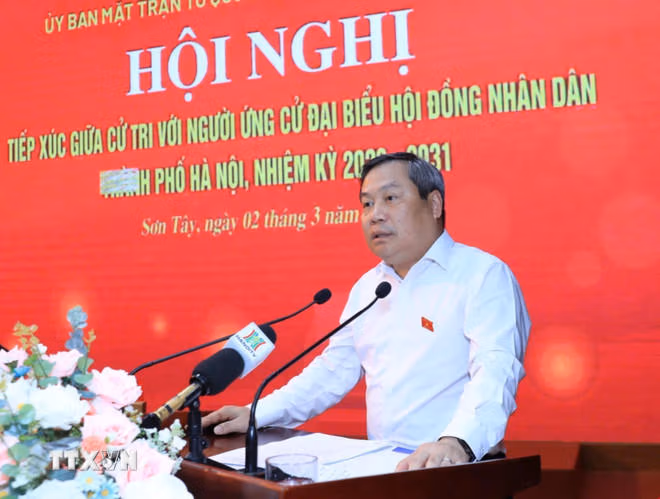 Phát biểu tại hội nghị, Chủ tịch Ủy ban Nhân dân thành phố Hà Nội Vũ Đại Thắng nhấn mạnh cuộc bầu cử đại biểu Quốc hội khóa XVI và Hội đồng Nhân dân các cấp nhiệm kỳ 2026-2031 diễn ra trong bối cảnh đất nước bước vào giai đoạn phát triển mới, tiếp tục đổi mới mô hình tăng trưởng, hoàn thiện thể chế, tinh gọn bộ máy và triển khai mô hình chính quyền địa phương hai cấp sau sắp xếp đơn vị hành chính.