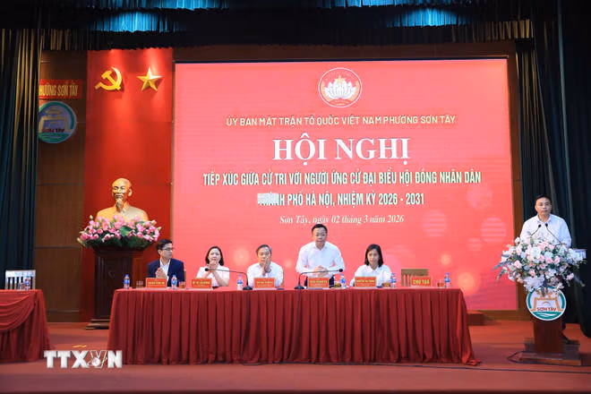 Sáng 2/3, Chủ tịch Ủy ban Nhân dân thành phố Hà Nội Vũ Đại Thắng cùng các ứng cử viên đại biểu Hội đồng Nhân dân thành phố khóa XVII, nhiệm kỳ 2026-2031 (Đơn vị bầu cử số 14) đã tiếp xúc cử tri, báo cáo chương trình hành động và vận động bầu cử tại khu vực Sơn Tây-Tùng Thiện-Đoài Phương.