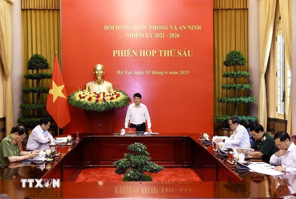 Chủ tịch nước chủ trì Phiên họp thứ sáu Hội đồng Quốc phòng và An ninh Thứ Hai 02/06/2025 11:09 (GMT+7) Sáng 2/6/2025, tại Phủ Chủ tịch, Hội đồng Quốc phòng và An ninh nhiệm kỳ 2021-2026 họp Phiên thứ sáu dưới sự chủ trì của Chủ tịch nước Lương Cường, Chủ tịch Hội đồng. Chủ tịch nước Lương Cường phát biểu chỉ đạo. (Ảnh: Lâm Khánh/TTXVN)Chủ tịch nước Lương Cường phát biểu chỉ đạo. (Ảnh: Lâm Khánh/TTXVN)Chủ tịch nước Lương Cường phát biểu chỉ đạo. (Ảnh: Lâm Khánh/TTXVN)Chủ tịch nước Lương Cường phát biểu chỉ đạo. (Ảnh: Lâm Khánh/TTXVN)Thủ tướng Phạm Minh Chính, Phó Chủ tịch Hội đồng phát biểu. (Ảnh: Lâm Khánh/TTXVN)Chủ tịch Quốc hội Trần Thanh Mẫn phát biểu. (Ảnh: Lâm Khánh/TTXVN) Theo TTXVN