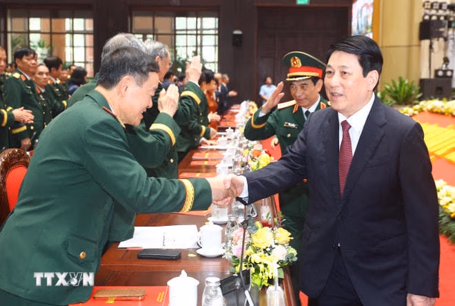 Chỉ rõ đảm bảo quốc phòng, an ninh vẫn luôn là nhiệm vụ trọng yếu, thường xuyên của toàn Đảng, toàn dân, toàn quân, Chủ tịch nước nhấn mạnh, Đảng và Nhà nước ta hết sức coi trọng và kiên định đường lối xây dựng nền quốc phòng toàn dân, thế trận chiến tranh nhân dân gắn với xây dựng nền an ninh nhân dân, thế trận an ninh nhân dân và “thế trận lòng dân" vững chắc.