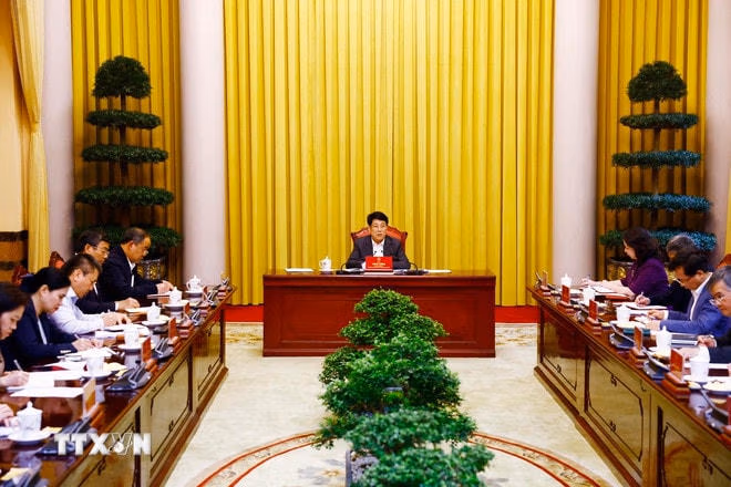 Sáng 13/3, tại Phủ Chủ tịch, Chủ tịch nước Lương Cường đã làm việc với lãnh đạo Văn phòng Chủ tịch nước, Bộ Ngoại giao và các đơn vị liên quan về một số nhiệm vụ trọng tâm trong thời gian tới.