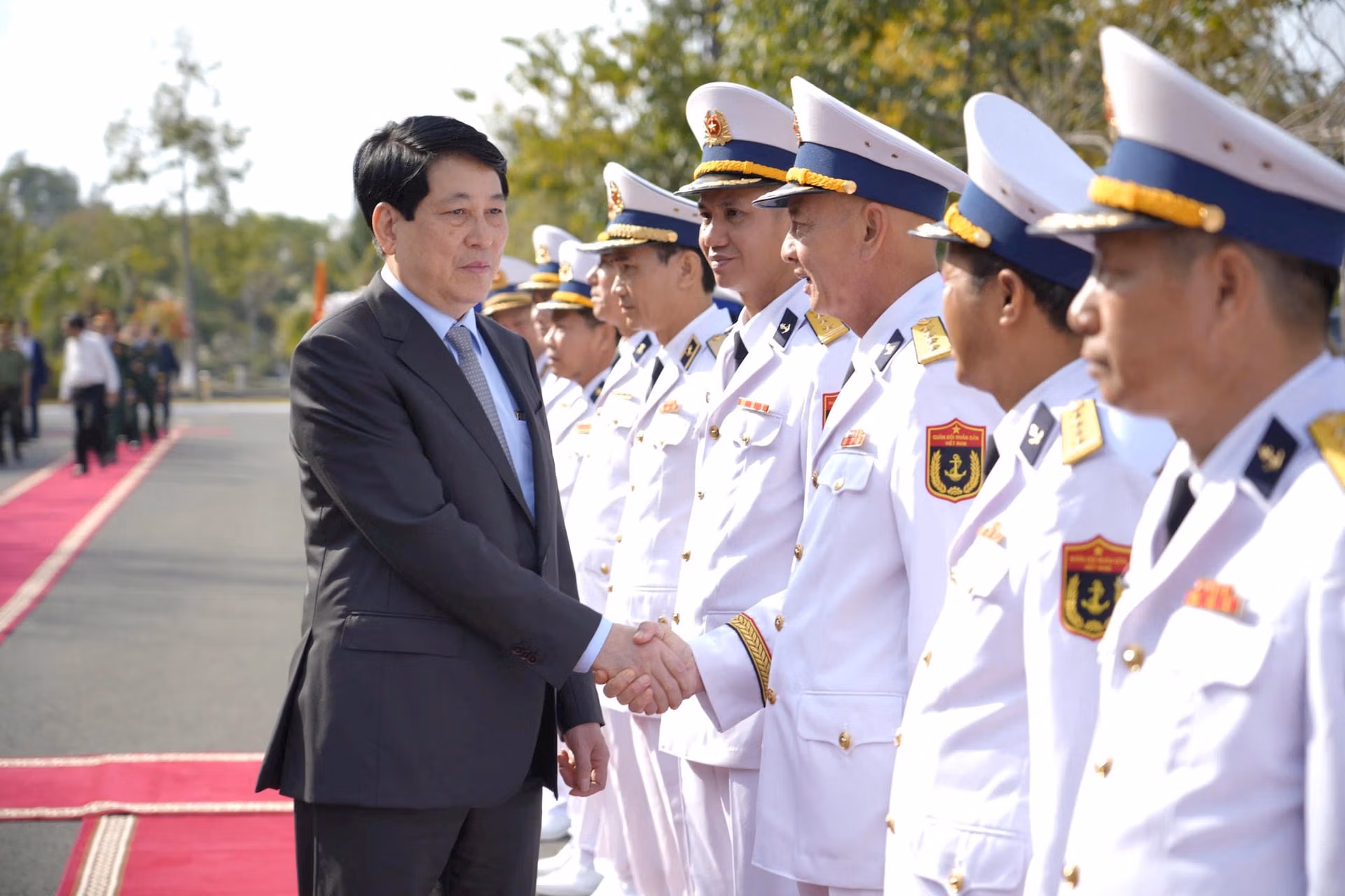 Thay mặt lãnh đạo Đảng và Nhà nước, Chủ tịch nước gửi đến cán bộ, chiến sĩ lực lượng vũ trang các đơn vị đóng quân tại TP Phú Quốc và đang làm nhiệm vụ trên vùng biển Tây Nam của Tổ quốc lời thăm hỏi chân tình và lời chúc năm mới tốt đẹp nhất.