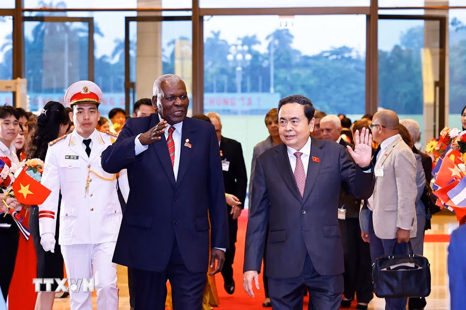 Chủ tịch Quốc hội Trần Thanh Mẫn đón và hội đàm với Chủ tịch Quốc hội Cuba Thứ Ba 30/09/2025 17:55 (GMT+7) Chiều 30/9, tại Nhà Quốc hội, Chủ tịch Quốc hội Trần Thanh Mẫn chủ trì lễ đón và hội đàm với Chủ tịch Quốc hội Cuba Esteban Lazo Hernández thăm chính thức Việt Nam. Chủ tịch Quốc hội Trần Thanh Mẫn đón Chủ tịch Quốc hội Cuba Esteban Lazo Hernández. (Ảnh: Doãn Tấn/TTXVN)Chủ tịch Quốc hội Trần Thanh Mẫn giới thiệu đoàn Việt Nam tới Chủ tịch Quốc hội Cuba Esteban Lazo Hernández. (Ảnh: Doãn Tấn/TTXVN)Chủ tịch Quốc hội Cuba Esteban Lazo Hernández giới thiệu đoàn Cuba tới Chủ tịch Quốc hội Trần Thanh Mẫn. (Ảnh: Doãn Tấn/TTXVN)Chủ tịch Quốc hội Trần Thanh Mẫn đón Chủ tịch Quốc hội Cuba Esteban Lazo Hernández. (Ảnh: Doãn Tấn/TTXVN)Chủ tịch Quốc hội Trần Thanh Mẫn đón Chủ tịch Quốc hội Cuba Esteban Lazo Hernández. (Ảnh: Doãn Tấn/TTXVN)Chủ tịch Quốc hội Trần Thanh Mẫn hội đàm với Chủ tịch Quốc hội Cuba Esteban Lazo Hernández. (Ảnh: Doãn Tấn/TTXVN)Chủ tịch Quốc hội Trần Thanh Mẫn phát biểu. (Ảnh: Doãn Tấn/TTXVN)Chủ tịch Quốc hội Trần Thanh Mẫn phát biểu. (Ảnh: Doãn Tấn/TTXVN)Chủ tịch Quốc hội Cuba Esteban Lazo Hernández phát biểu. (Ảnh: Doãn Tấn/TTXVN) TheoVietnam+ (VietnamPlus)