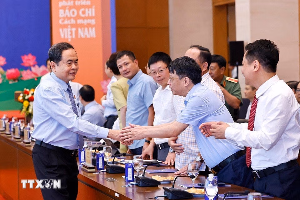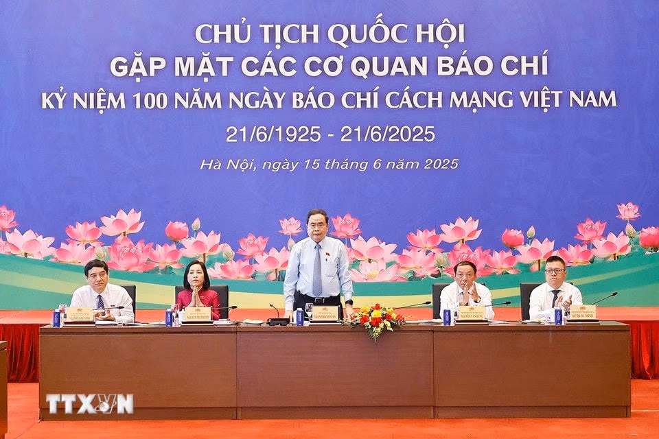 Chủ tịch Quốc hội Trần Thanh Mẫn gặp mặt các cơ quan báo chí Chủ Nhật 15/06/2025 11:08 (GMT+7) Sáng 15/6, tại Hà Nội, Chủ tịch Quốc hội Trần Thanh Mẫn gặp mặt các cơ quan báo chí nhân kỷ niệm 100 năm Ngày Báo chí Cách mạng Việt Nam (21/6/1925 -21/6/2025). Chủ tịch Quốc hội Trần Thanh Mẫn với lãnh đạo các cơ quan quản lý báo chí và cơ quan báo chí. (Ảnh: Doãn Tấn/TTXVN)Chủ tịch Quốc hội Trần Thanh Mẫn với lãnh đạo các cơ quan quản lý báo chí và cơ quan báo chí. (Ảnh: Doãn Tấn/TTXVN)Chủ tịch Quốc hội Trần Thanh Mẫn với lãnh đạo các cơ quan quản lý báo chí và cơ quan báo chí. (Ảnh: Doãn Tấn/TTXVN)Chủ tịch Quốc hội Trần Thanh Mẫn với lãnh đạo các cơ quan quản lý báo chí và cơ quan báo chí. (Ảnh: Doãn Tấn/TTXVN)Chủ tịch Quốc hội Trần Thanh Mẫn gặp mặt các cơ quan báo chí. (Ảnh: Doãn Tấn/TTXVN)Chủ tịch Quốc hội Trần Thanh Mẫn gặp mặt các cơ quan báo chí. (Ảnh: Doãn Tấn/TTXVN)Đại biểu dự gặp mặt. (Ảnh: Doãn Tấn/TTXVN)Đại biểu dự gặp mặt. (Ảnh: Doãn Tấn/TTXVN)Đại biểu dự gặp mặt. (Ảnh: Doãn Tấn/TTXVN)Đại biểu dự gặp mặt. (Ảnh: Doãn Tấn/TTXVN)Tổng giám đốc Thông tấn xã Việt Nam Vũ Việt Trang trân trọng trao tặng Chủ tịch Quốc hội Trần Thanh Mẫn cuốn sách ảnh “100 năm Báo chí Cách mạng Việt Nam (1925-2025)” do Nhà xuất bản Thông tấn biên soạn, xuất bản. (Ảnh: Doãn Tấn/TTXVN)Tổng giám đốc Thông tấn xã Việt Nam Vũ Việt Trang phát biểu. (Ảnh: Doãn Tấn/TTXVN)Ông Lê Quốc Minh, Phó trưởng Ban Tuyên giáo-Dân vận Trung ương, Tổng Biên tập Báo Nhân Dân, Chủ tịch Hội Nhà báo Việt Nam, phát biểu. (Ảnh: Doãn Tấn/TTXVN)Nhà báo Hà Đăng, nguyên Tổng Biên tập Báo Nhân Dân phát biểu. (Ảnh: Doãn Tấn/TTXVN) Theo TTXVN