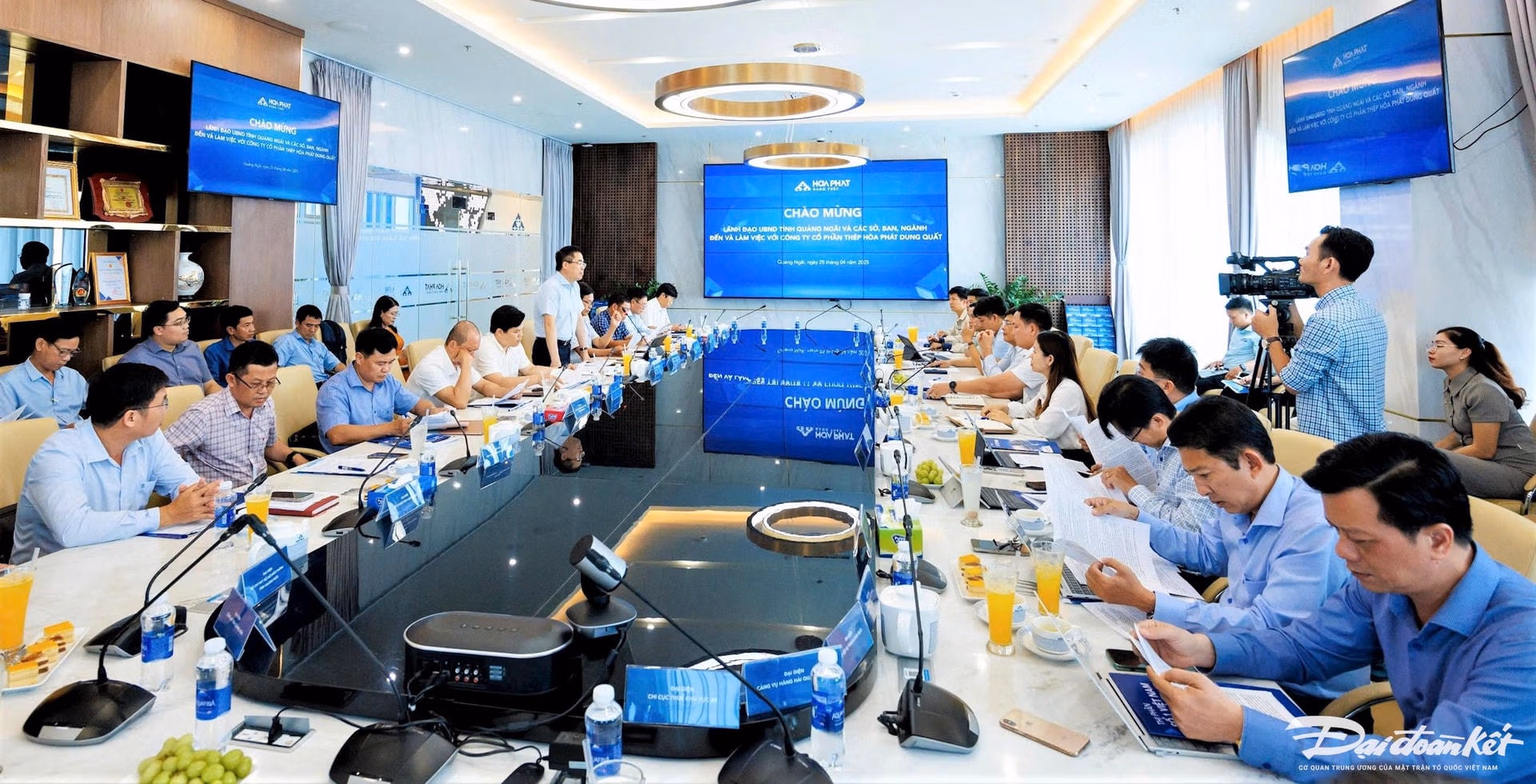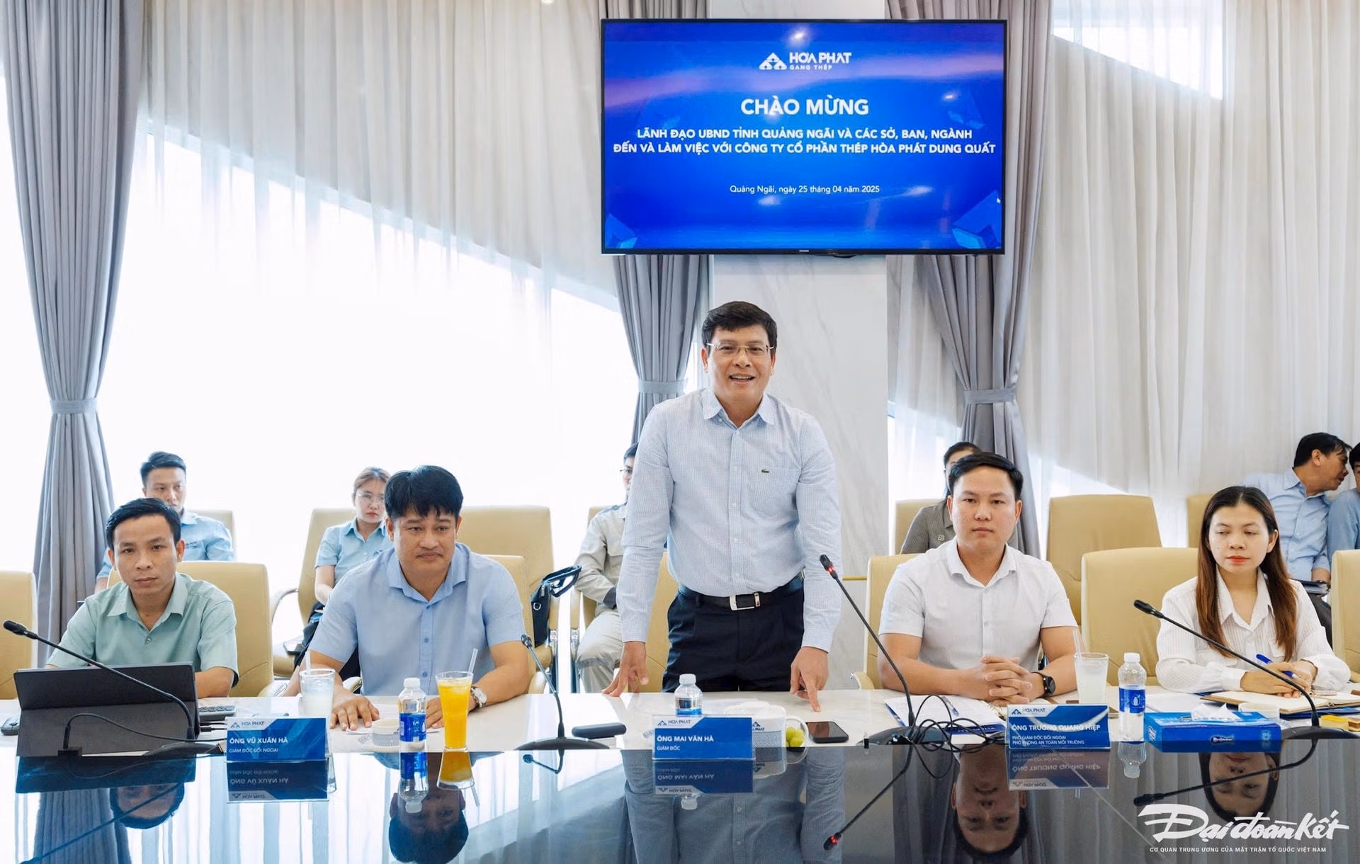Tham dự cuộc họp có: ông Nguyễn Hoàng Giang, Chủ tịch UBND tỉnh; ông Trần Phước Hiền, Phó Chủ tịch UBND tỉnh cùng lãnh đạo các sở, ban, ngành tỉnh, lãnh đạo Công ty CP Thép Hòa Phát Dung Quất.