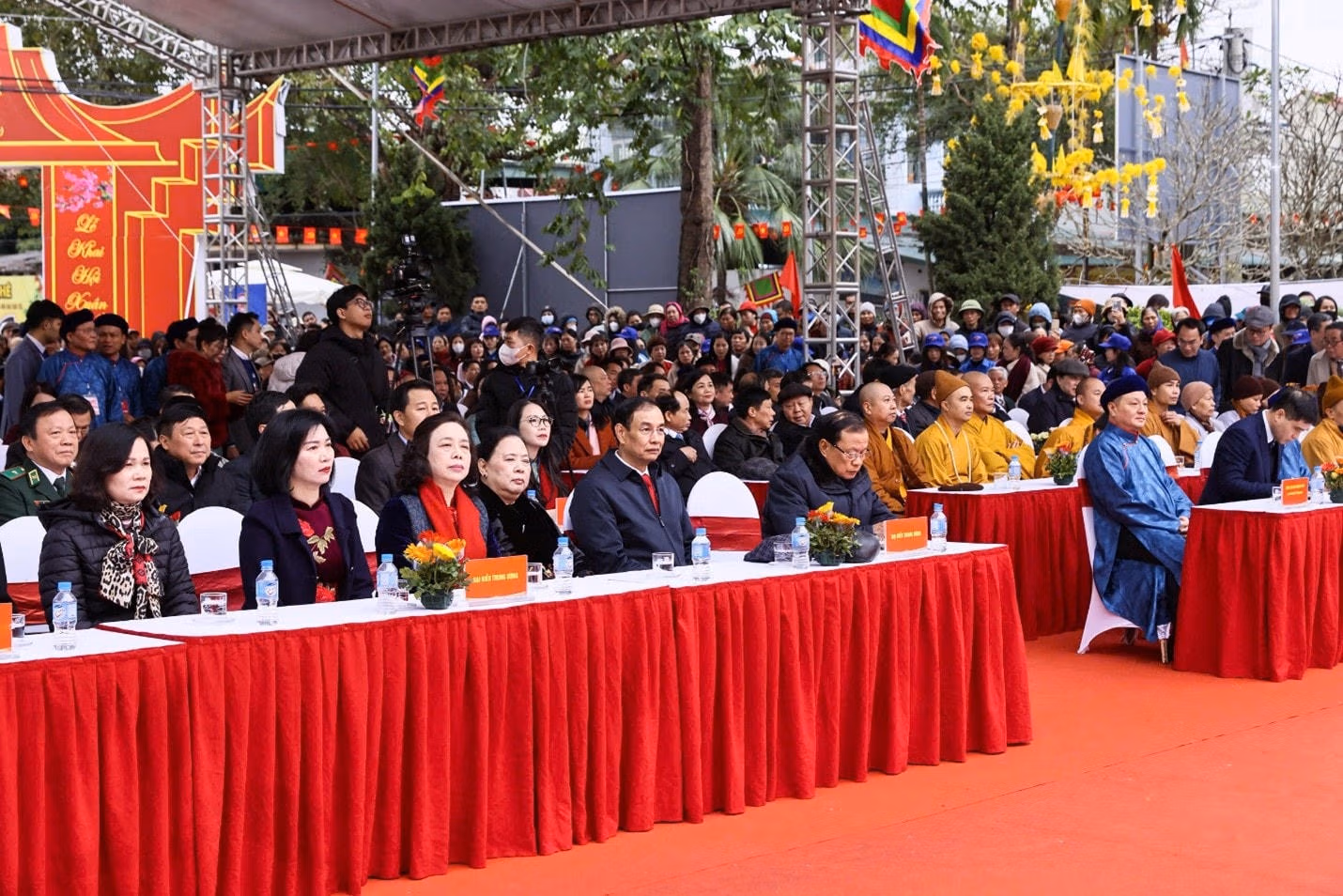 Sau lễ khai mạc, Bí thư Huyện ủy Thanh Oai Bùi Hoàng Phan đánh trống chính thức khai hội chùa Bối Khê Xuân Ất Tỵ 2025.