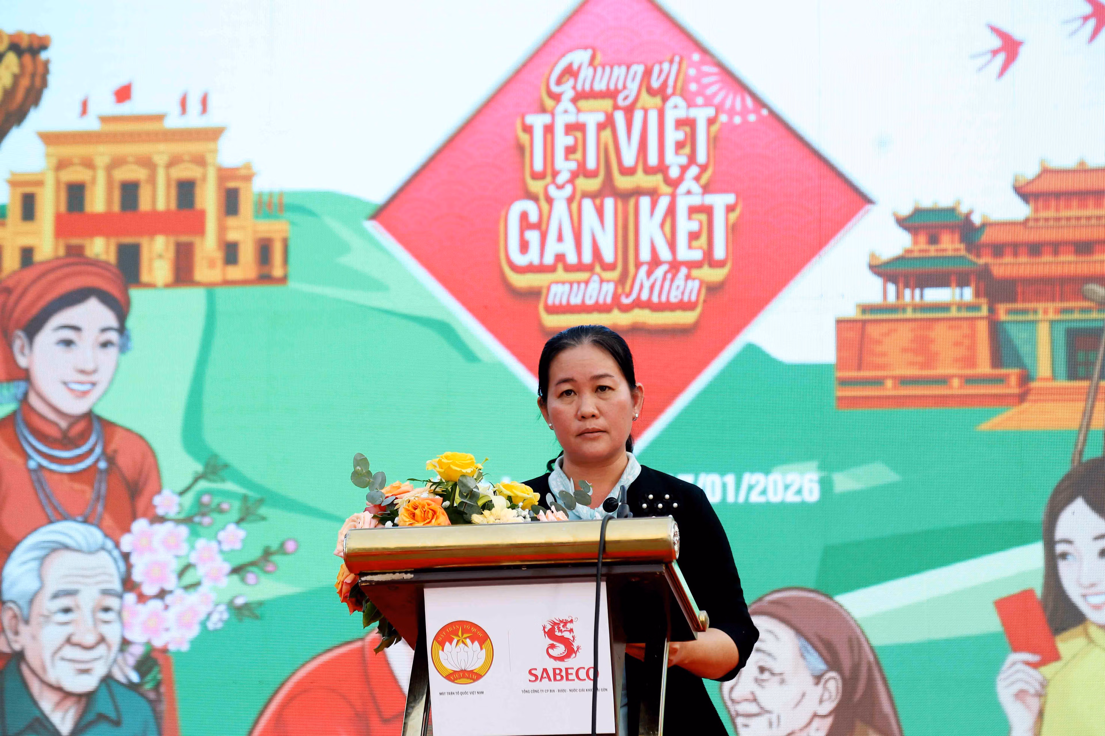 Thay mặt Ban thường trực Ủy ban MTTQ Việt Nam tỉnh Vĩnh Long, bà Nguyễn Thị Tuấn Thanh, Phó Chủ tịch Ủy ban MTTQ Việt Nam tỉnh Vĩnh Long cảm ơn Sabeco đã tổ chức chương trình tết cộng đồng đầy ý nghĩa ngày hôm nay.