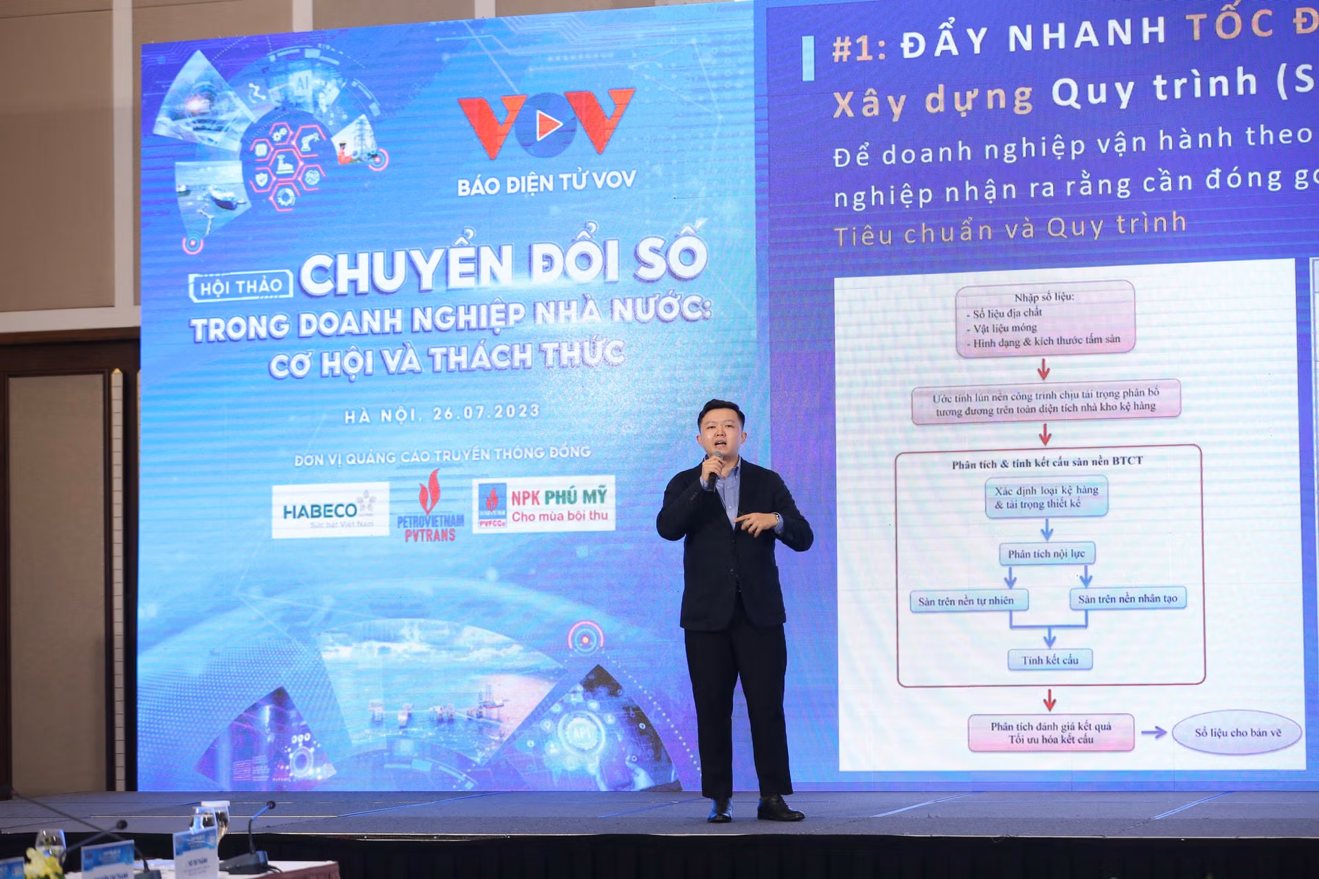 Ngày 26/7/2023, hội thảo “Chuyển đổi số trong doanh nghiệp nhà nước: Cơ hội và thách thức” do Báo Điện tử VOV - Đài Tiếng nói Việt Nam phối hợp các đơn vị liên quan tổ chức đã diễn ra tại KS Melia, số 44 Lý Thường Kiệt, Hà Nội. Hội thảo có sự đồng hành của Tổng Công ty Phân bón và Hoá chất Dầu khí - CTCP (PVFCCo); Tổng Công ty Cổ phần Vận tải Dầu khí (PVTRANS); Tổng Công ty Cổ phần Bia - Rượu - Nước giải khát Hà Nội (HABECO).