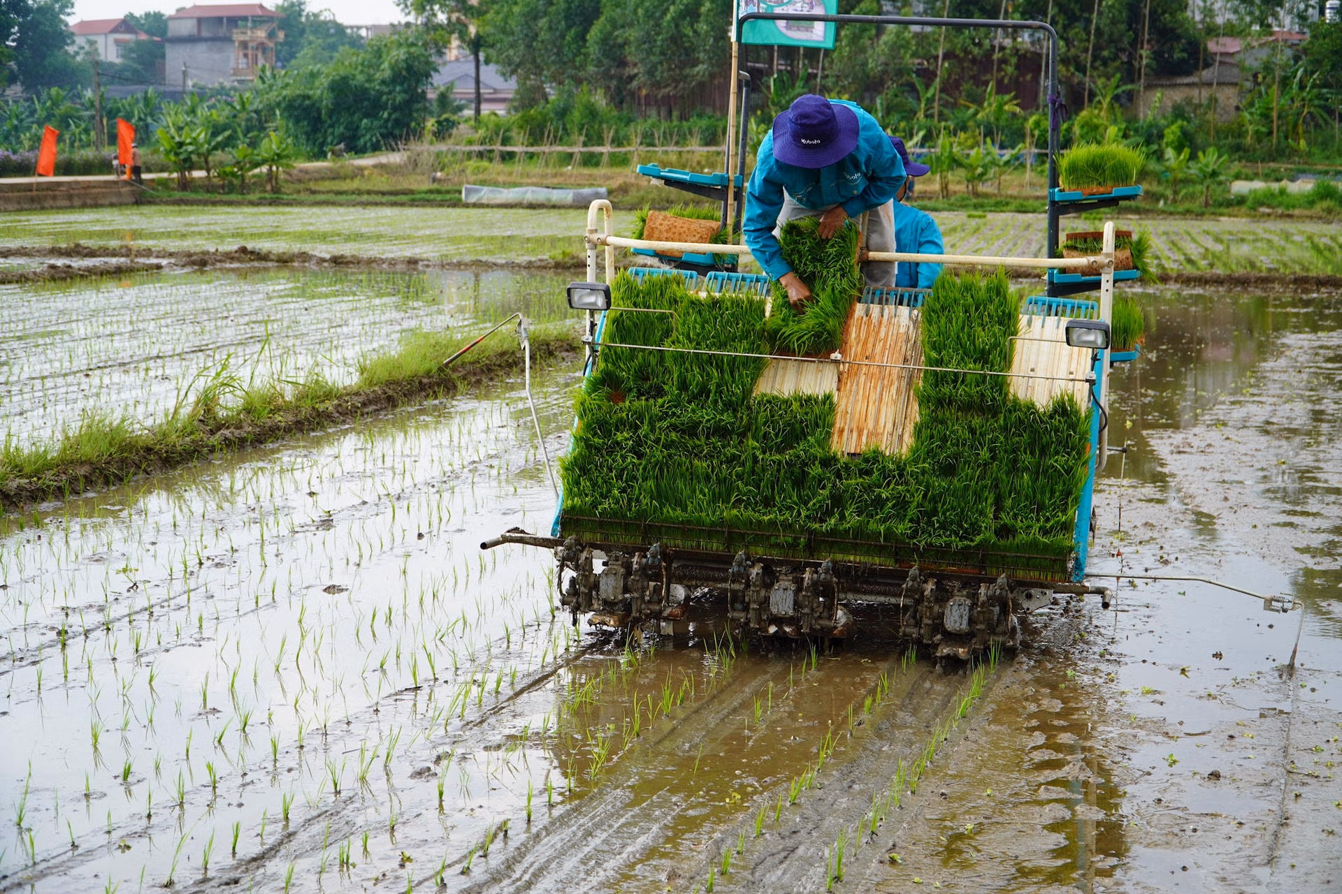 Trong đó, chuyển giao 2 khâu mới là mạ khay – máy cấy và công nghệ máy bay không người lái được định vị bằng thiết bị Drone.