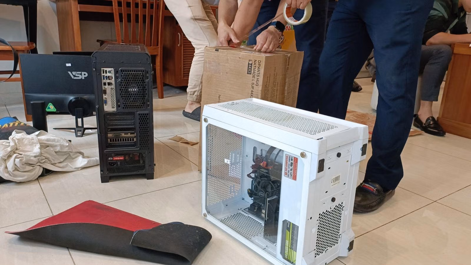 Khám xét khẩn cấp nơi ở của các đối tượng tại các căn hộ chung cư, Ban chuyên án đã thu giữ 28 bộ máy vi tính, 31 thiết bị phát sóng Internet, 43 điện thoại di động các loại, 18 thẻ ngân hàng, 61 thẻ sim điện thoại và nhiều đồ vật, tài liệu có liên quan đến vụ án.