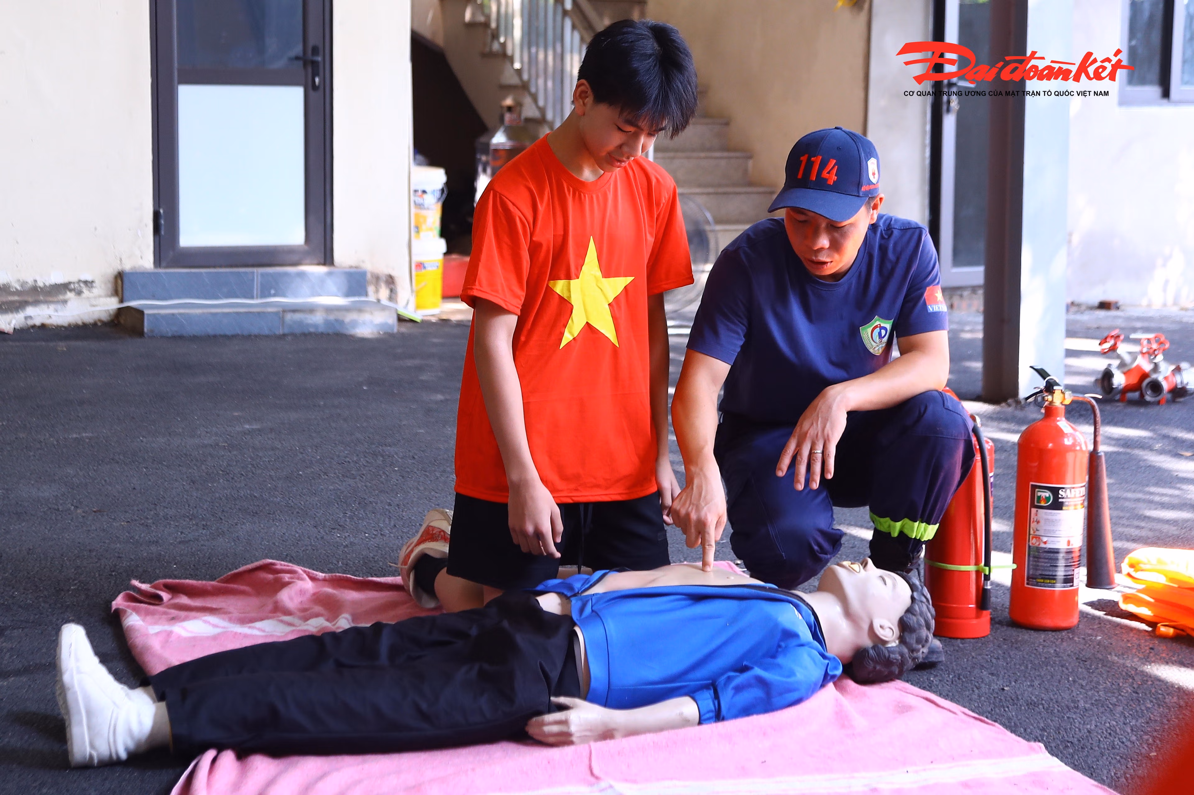 Sáng ngày 18/10, Đội Cảnh sát Phòng cháy, chữa cháy và cứu nạn cứu hộ (PCCC và CNCH) phối hợp với Đội Cảnh sát đường thủy số 2 (Phòng CSGT Hà Nội) tổ chức tuyên truyền, giáo dục cho học sinh về kỹ năng cấp cứu người khi đuối nước, hô hấp nhân tạo, sử dụng bình chữa cháy…