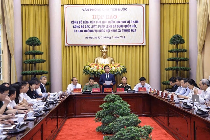 Sáng 3/7, tại Phủ Chủ tịch, Văn phòng Chủ tịch nước tổ chức họp báo công bố Lệnh của Chủ tịch nước công bố 15 luật, 1 pháp lệnh đã được Quốc hội, Ủy ban Thường vụ Quốc hội khóa XV thông qua.
