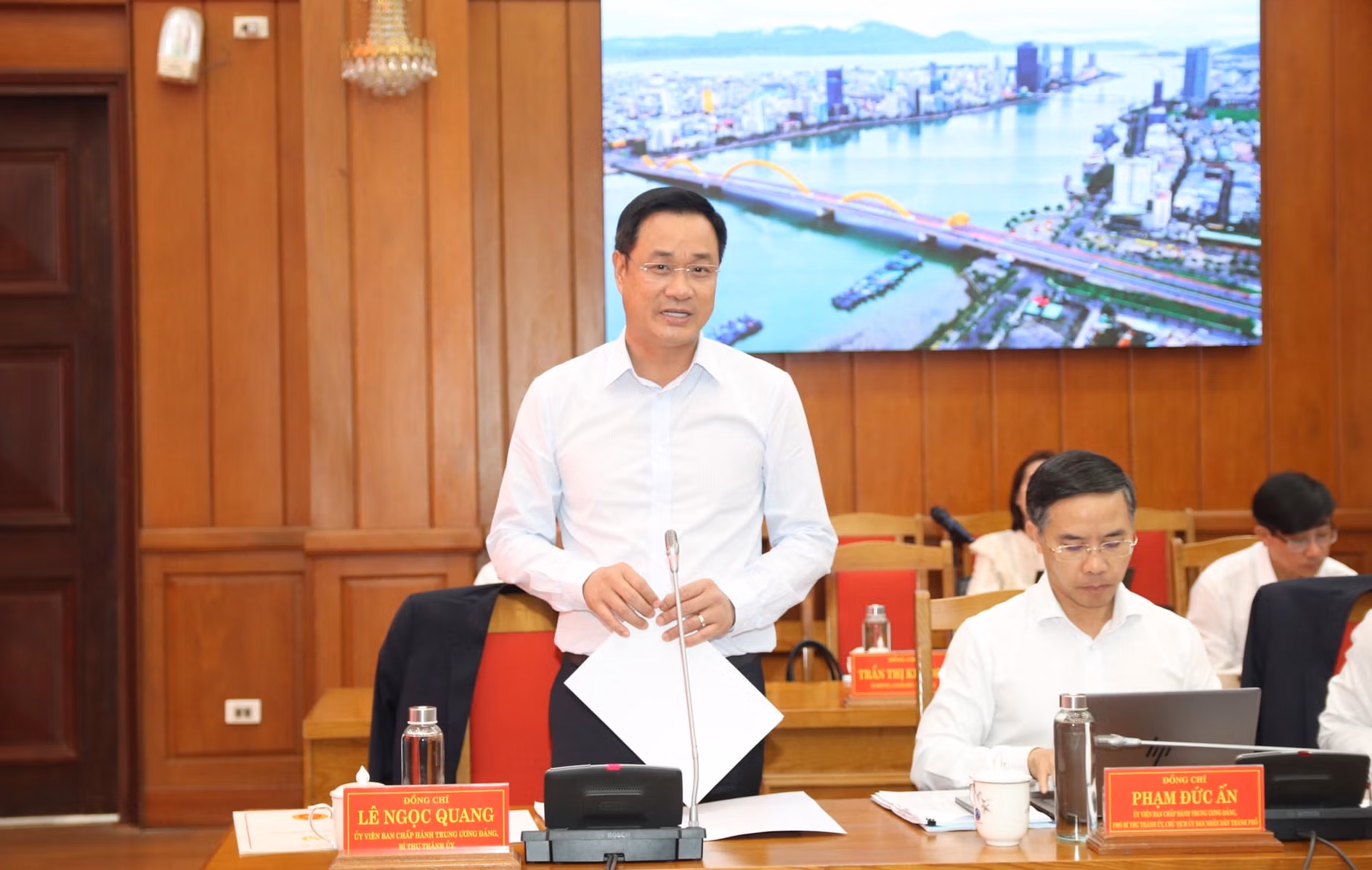 Phát biểu tiếp thu, Bí thư Thành ủy Đà Nẵng Lê Ngọc Quang trân trọng cảm ơn Thường trực Ban Bí thư Trần Cẩm Tú, Trưởng Đoàn Kiểm tra, giám sát số 12 cùng các thành viên trong Đoàn đã trực tiếp công bố quyết định, quán triệt mục đích, yêu cầu, nội dung và phương pháp kiểm tra, giám sát, đồng thời định hướng nhiều vấn đề quan trọng đối với công tác xây dựng Đảng và phát triển kinh tế, xã hội của TP Đà Nẵng.