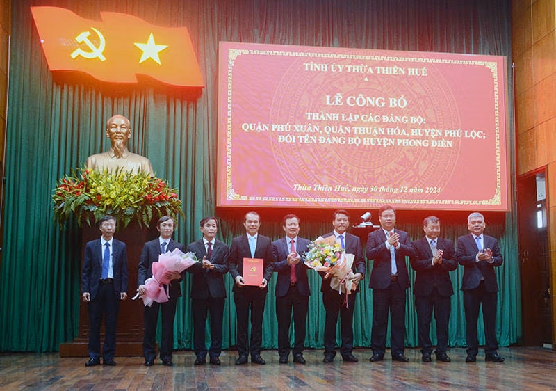 Ngày 30/12, Ban Thường vụ Tỉnh ủy Thừa Thiên - Huế tổ chức Lễ công bố Quyết định về việc thành lập các đảng bộ: quận Phú Xuân, quận Thuận Hóa, huyện Phú Lộc; quyết định đổi tên Đảng bộ huyện Phong Điền thành Đảng bộ thị xã Phong Điền.