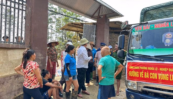 Còn tại một số tỉnh miền núi thành phía Bắc, hoạt động chăm lo đoàn viên, người lao động được Công đoàn phường Nghĩa Lộ, tỉnh Lào Cai tổ chức hết sức xúc động và hiệu quả. Công đoàn phường phối hợp với Nghiệp đoàn cơ sở Chợ Sơn Thịnh và các nhà hảo tâm trao tặng 100 suất quà cho các hộ nghèo trong địa bàn xã, mỗi suất trị giá 700.000 đồng, bao gồm nhu yếu phẩm thiết yếu và tiền mặt, góp phần hỗ trợ người dân ổn định cuộc sống sau những thiệt hại cùng khó khăn do bão lũ gây ra.