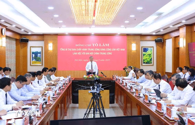 Theo Tổng Bí thư Tô Lâm, công tác nội chính phải hướng đến mục tiêu giữ vững ổn định để phát triển đất nước. Ban Ban Nội chính Trung ương cần phối hợp chặt chẽ với các Ban của Đảng, các cơ quan khối nội chính làm tốt công tác nắm, phân tích, nghiên cứu, dự báo tình hình, tham mưu chiến lược với Đảng theo chức năng, nhiệm vụ được giao; tham mưu có chủ trương xử lý hiệu quả những vấn đề phức tạp, những nguy cơ, mầm mống có thể gây mất ổn định, bảo đảm luôn giữ thế chủ động trong mọi tình huống.