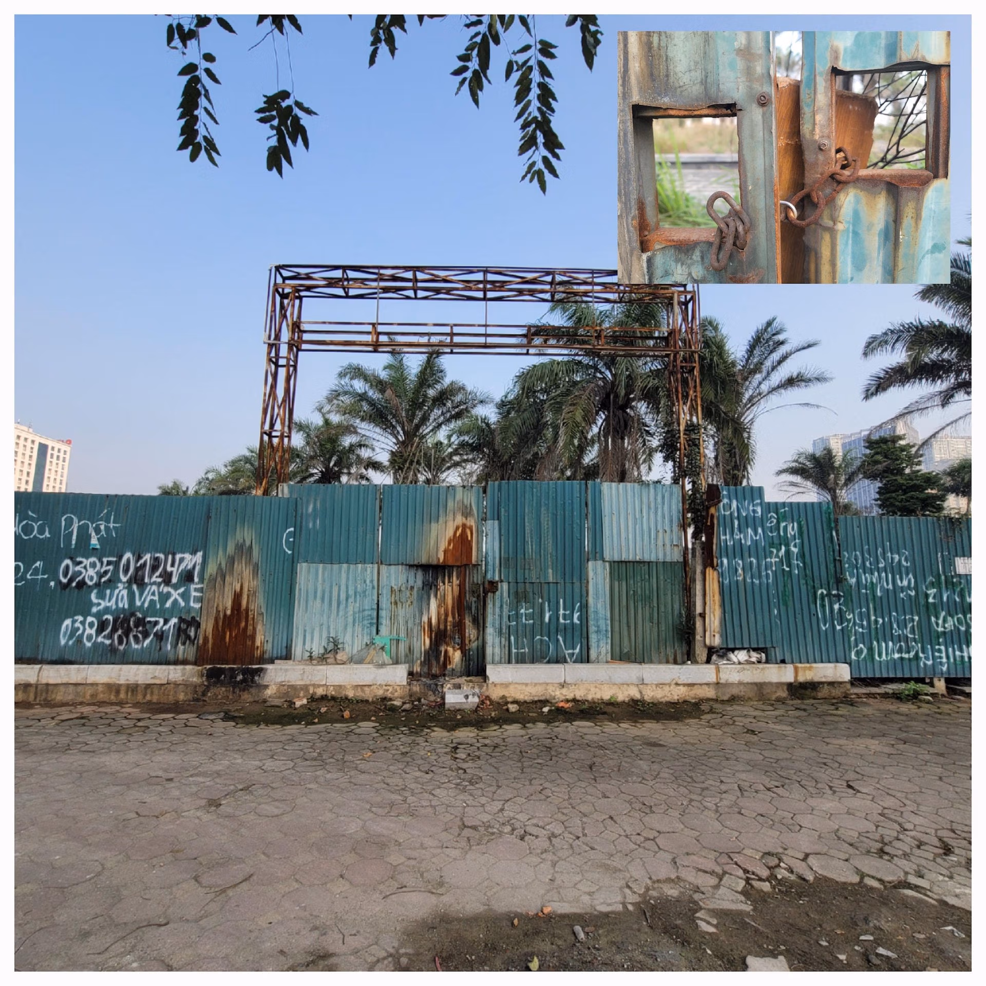 Hiện toàn bộ được quây tôn, lối vào chính đều được khóa lại. Bên trong có bảo vệ thay phiên nhau trông giữ. Theo đại diện UBND phường Trung Văn, dự án vẫn chưa đưa vào hoạt động được là do còn vướng giải phóng mặt bằng.