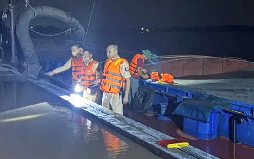 Rạng sáng 21/8, Phòng CSGT (Công an Hà Nội) phối hợp với Phòng 8 Cục CSGT - Bộ Công an và Công an huyện Đông Anh tổ chức kiểm tra, bắt giữ 2 phương tiện thủy đang khai thác cát trái phép trên sông Hồng, thu giữ khoảng 600 m3 cát.