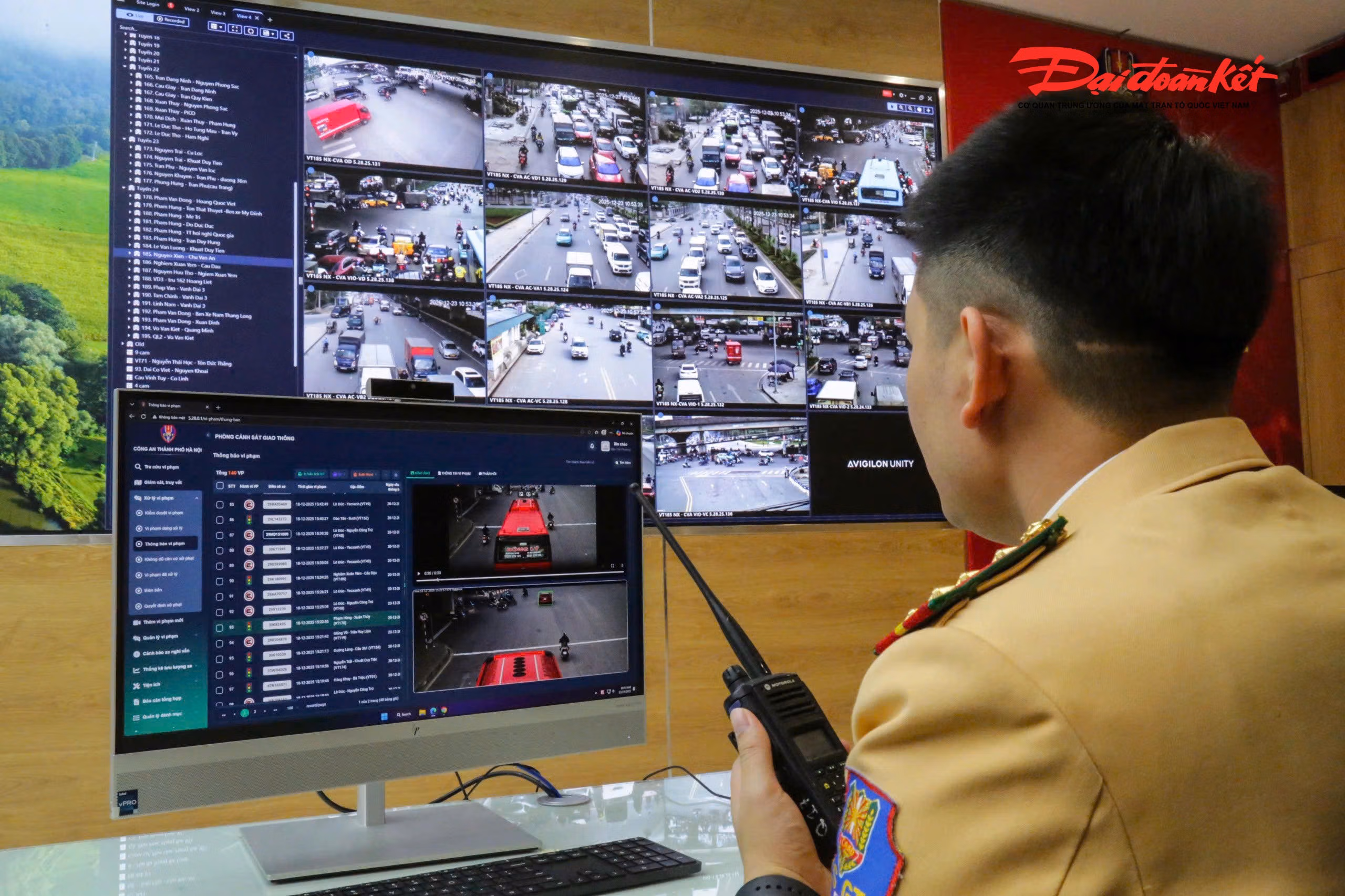 Cùng với lực lượng trực tiếp làm nhiệm vụ ngoài hiện trường, Phòng CSGT Công an TP Hà Nội bố trí cán bộ làm nhiệm vụ tại Trung tâm Điều khiển giao thông, chủ động điều chỉnh hệ thống đèn tín hiệu giao thông trên các tuyến diễn ra sự kiện cho phù hợp với tình hình thực tế. Đồng thời, theo dõi sát tình hình giao thông thông qua hệ thống camera AI, kịp thời phát hiện các tình huống phát sinh, phối hợp với các đội CSGT địa bàn điều tiết, xử lý ngay từ sớm, không để xảy ra ùn tắc giao thông.