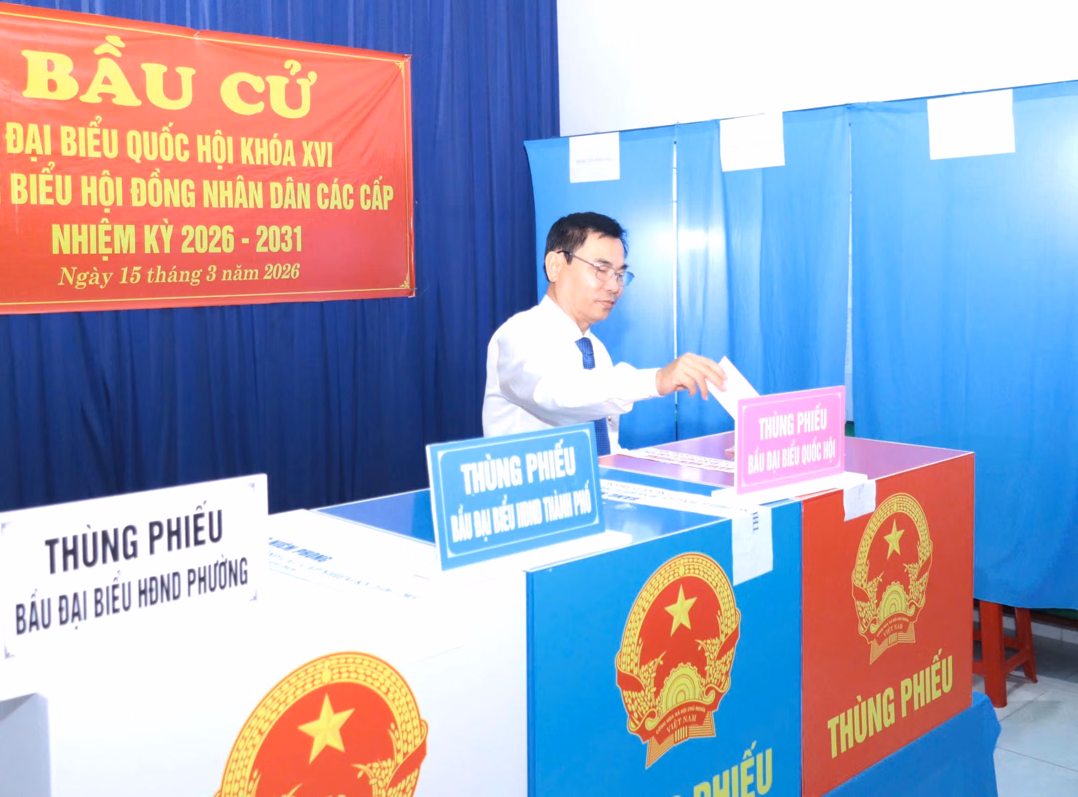 Ngay sau lễ khai mạc, ông Nguyễn Văn Minh đã thực hiện bỏ lá phiếu đầu tiên. Các cử tri sau đó lần lượt thực hiện việc bỏ phiếu trong không khí nghiêm túc, trật tự, thể hiện tinh thần trách nhiệm và niềm tin đối với sự kiện chính trị quan trọng của đất nước.