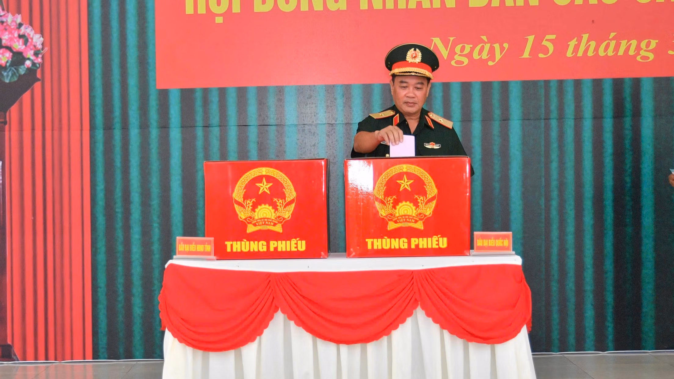 Sáng 15/3, hòa chung không khí ngày hội của cử tri cả nước, cán bộ, chiến sĩ lực lượng vũ trang tỉnh An Giang tham gia bầu cử đại biểu Quốc hội khóa XVI và đại biểu HĐND các cấp nhiệm kỳ 2026–2031 tại các điểm bỏ phiếu thuộc Bộ Chỉ huy Quân sự (CHQS) tỉnh.