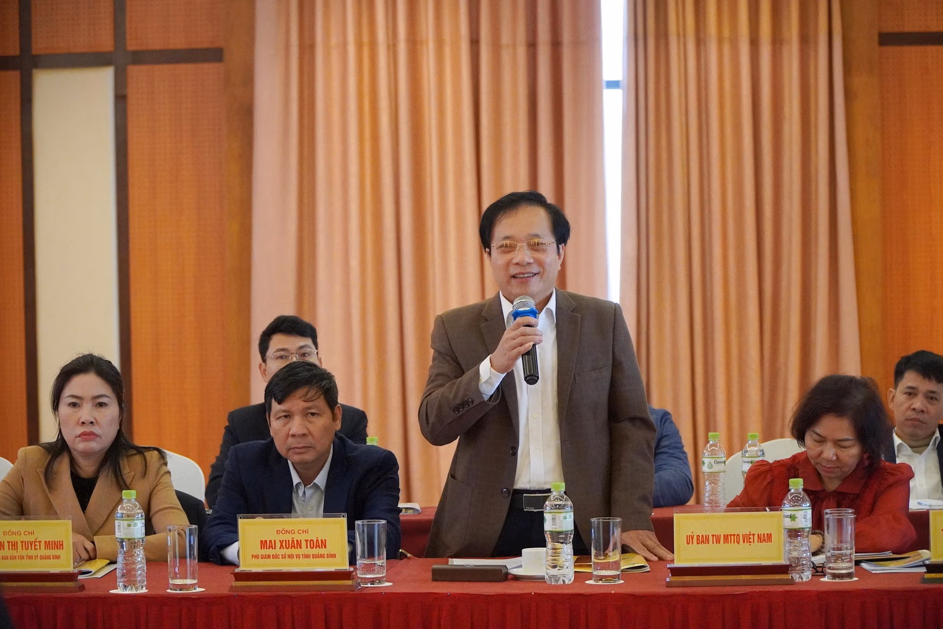 Ông Vũ Đăng Minh, Trưởng ban Tôn giáo, UBTƯ MTTQ Việt Nam ghi nhận những kết quả đạt được của Cụm thi đua Ủy ban MTTQ các tỉnh Bắc Trung Bộ; đồng thời giải đáp một số kiến nghị, đề xuất của các đơn vị...
