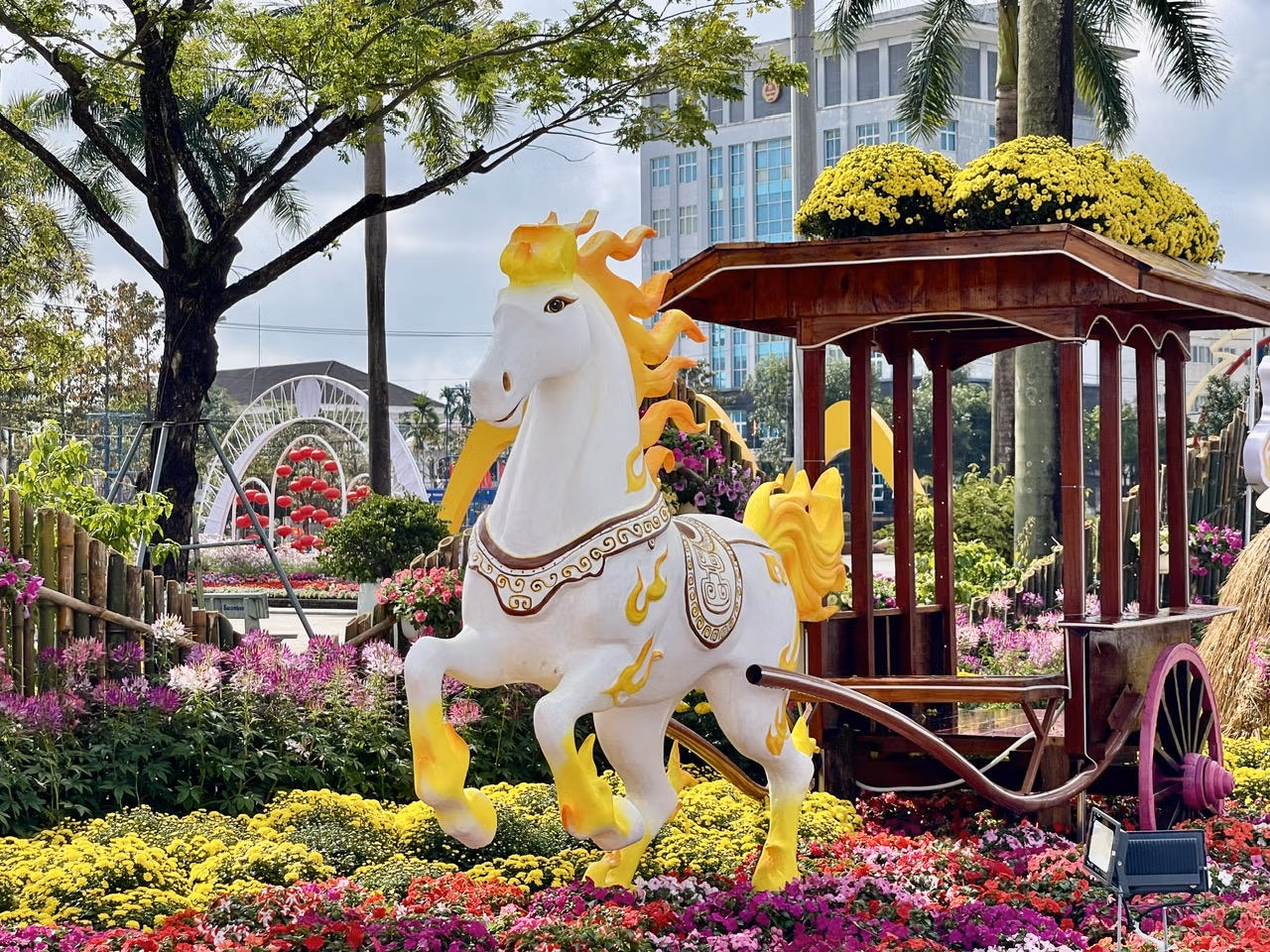 Cùng với đó, xung quanh được tổ chức đa dạng các loài hoa theo mùa kết hợp lối dạo tham quan, tạo không gian thưởng lãm đa chiều, góp phần mang đến trải nghiệm trọn vẹn cho người dân và du khách trong dịp Tết, vừa giàu sắc xuân lễ hội vừa gần gũi, thân thiện và giàu cảm xúc.