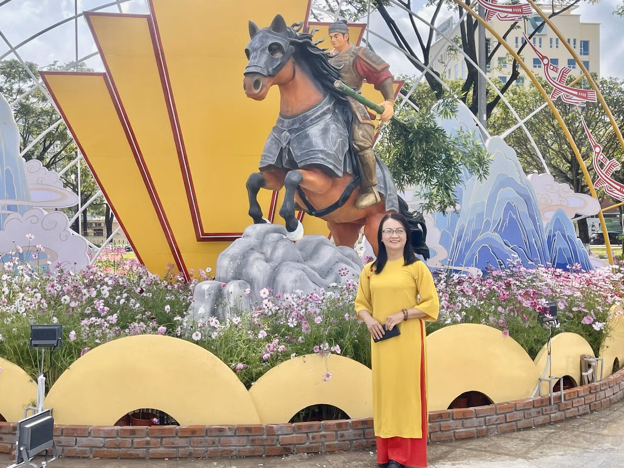 Anh Lê Bằng đến từ TP Huế cho rằng: “Những ngày qua tôi di chuyển nhiều nơi, được ngắm nhiều linh vật của năm Bính Ngọ 2026, mỗi nơi đẹp mỗi vẻ, nhưng đến Quảng trường 24/3 cách bài trí, bố cục nơi đây thật độc đáo, giá trị truyền thống của Tết cổ truyền Việt Nam thông qua hình ảnh nhà tranh, bánh chưng, lại còn có biểu tượng Thánh Gióng và 3 con ngựa vàng dũng mãnh, oai phong rất ấn tượng.