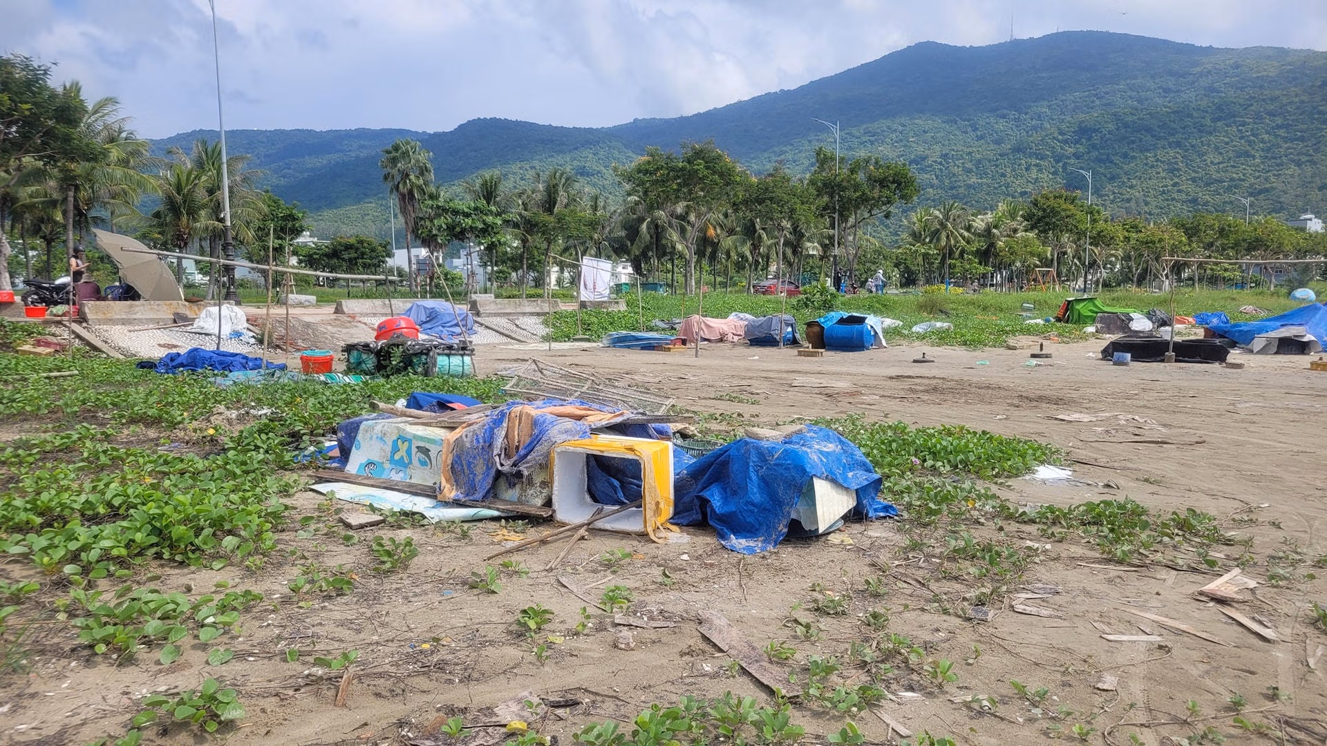 Theo ghi nhận của phóng viên trong các ngày 12, 13, 14/10, tình trạng nhếch nhác, phản cảm của lều quán, phương tiện, vật dụng đánh bắt, đặc biệt là hoạt động sơ chế, phân loại hải sản ở bãi biển đầu tuyến đường Hoàng Sa, dưới chân núi Sơn Trà (địa bàn phường Thọ Quang, quận Sơn Trà) vẫn diễn ra ngoài khung giờ quy định của UBND phường Thọ Quang.